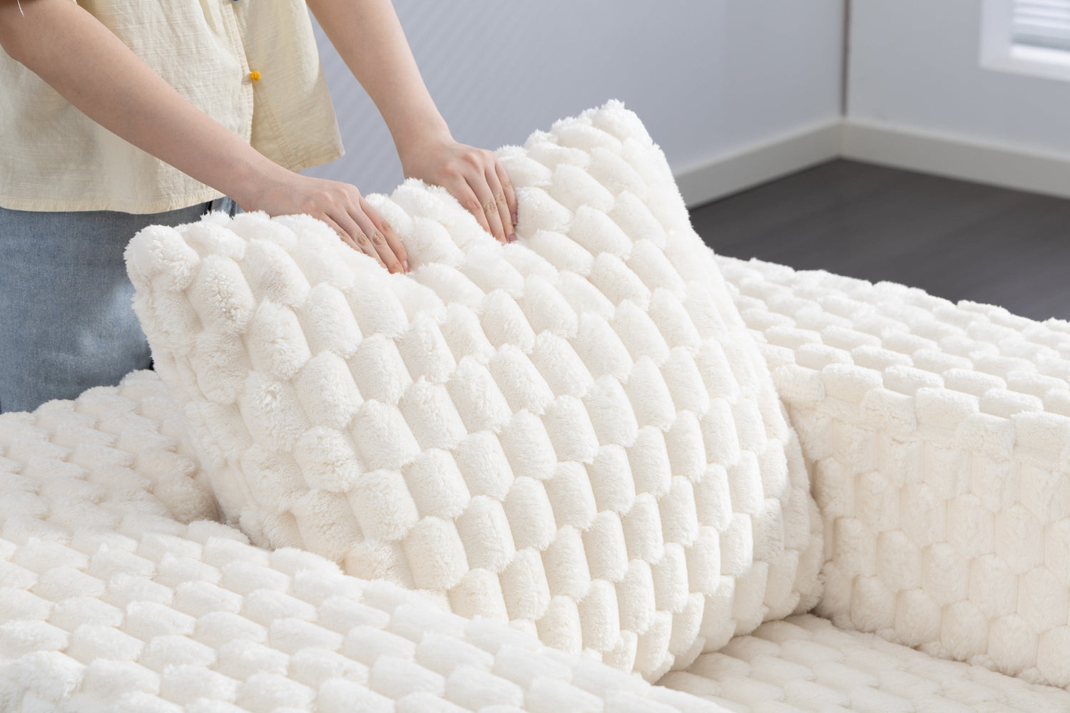 - No Assembly Required - No assembly is required for the lounge sofa, and as the cushions are vacuum-compressed, allow up to 72 hours for them to return to their original shape. To expedite this process, you may knead the cushions gently, similar to a massage, to facilitate air circulation through the foam. This will enhance the cushions' rebound and help them become fluffy. If there are any wrinkles, use an iron to gently smooth them out.
