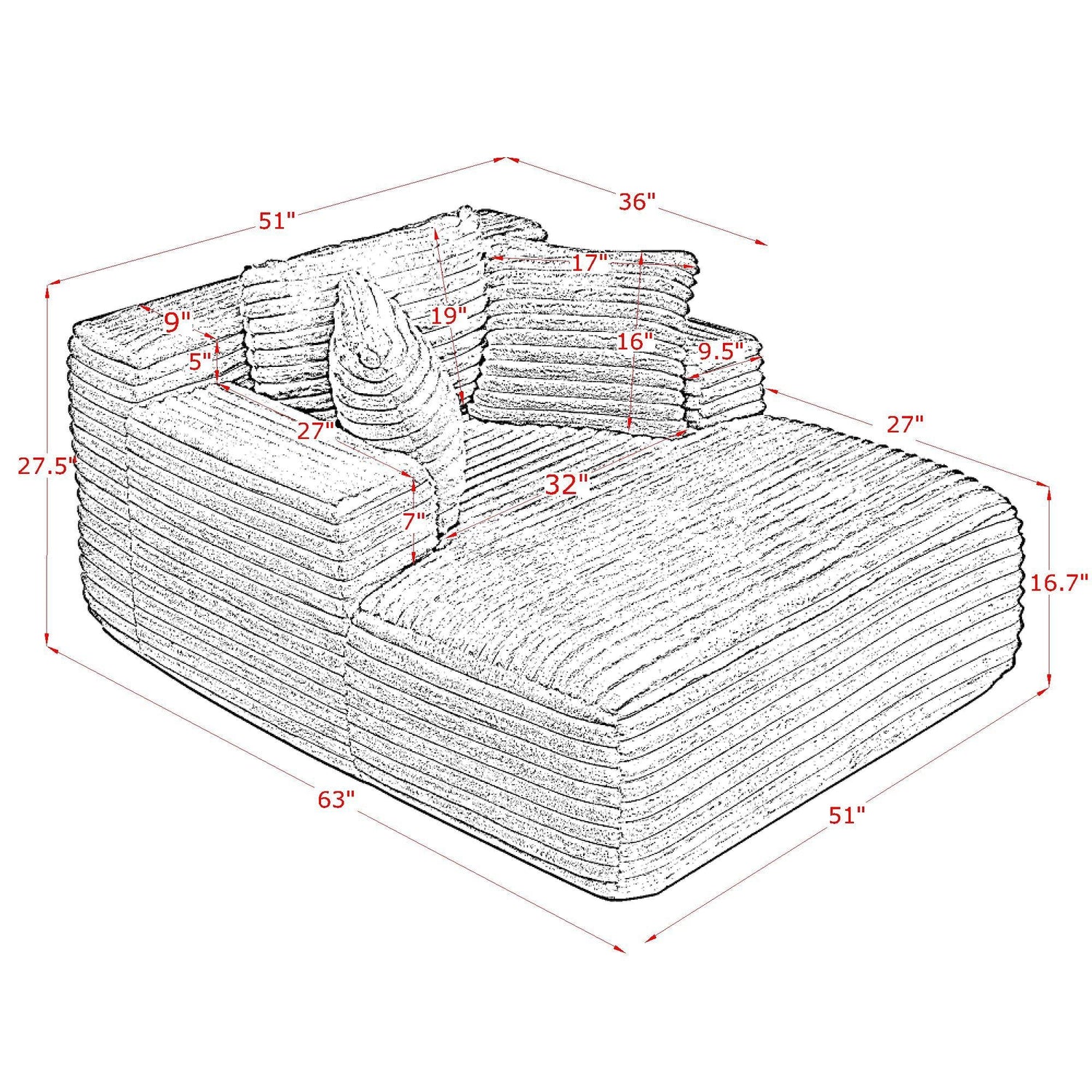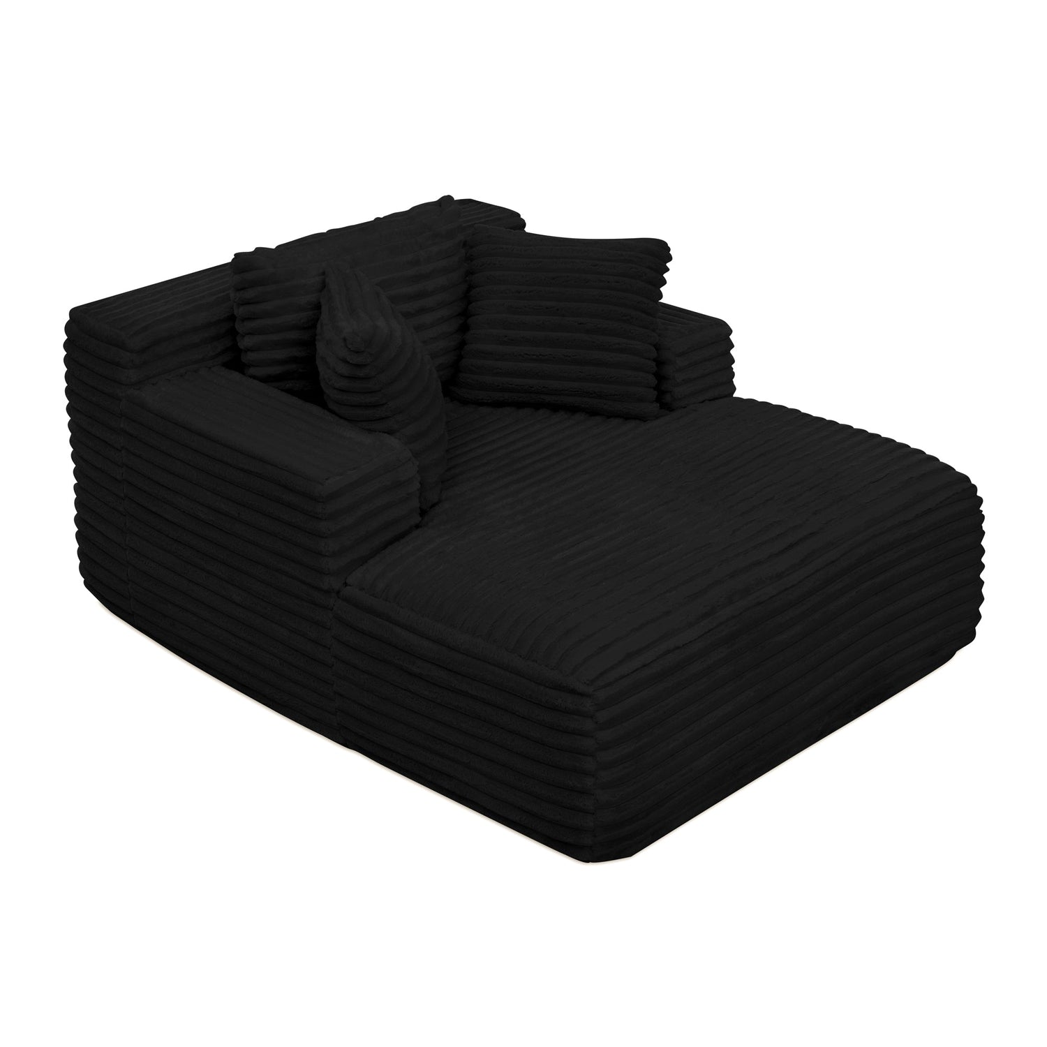 NEW Compressed Chaise Lounge Foam Fluffy Black Corduroy Upholstered Cloud Sofa Bed Couch with Deep Seat