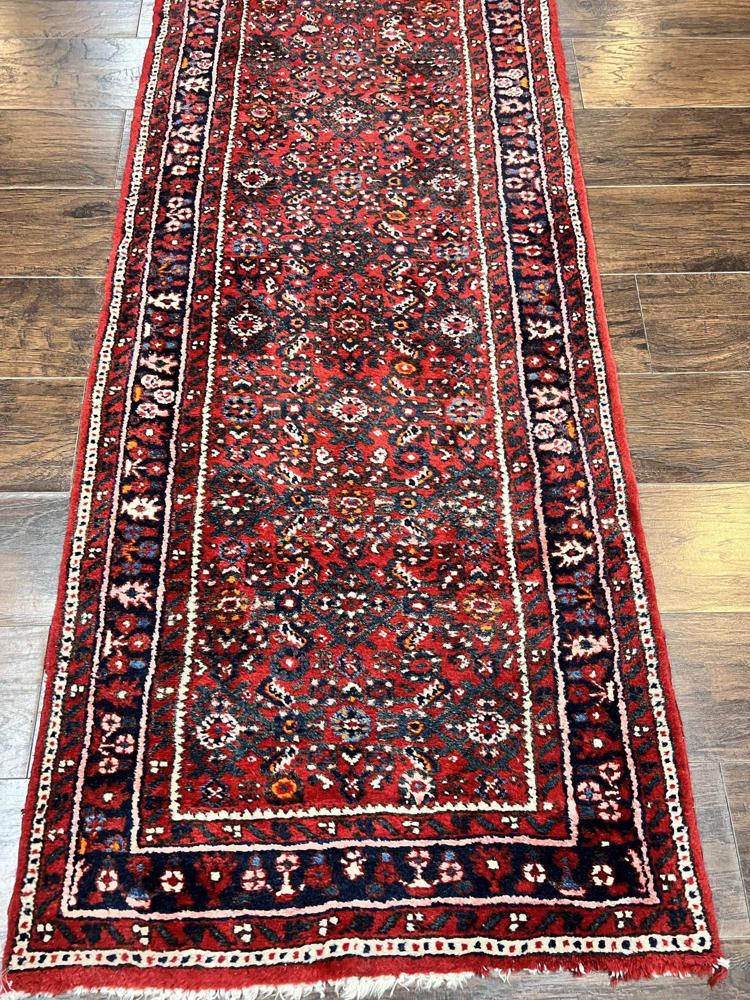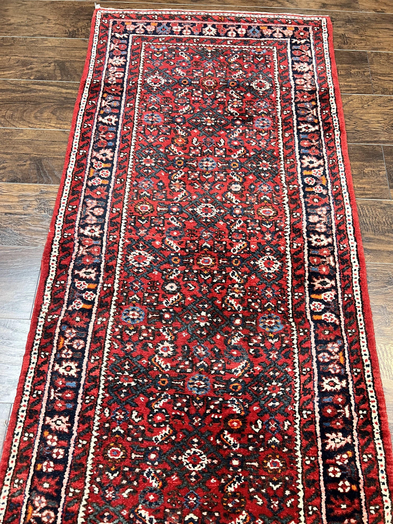 USED Long Persian Runner Rug 2.9 x 17, Red Handmade Wool Rug for Hallway, Antique Persian Carpet, 17ft Runner, Persian Hamadan Dargazine Rug