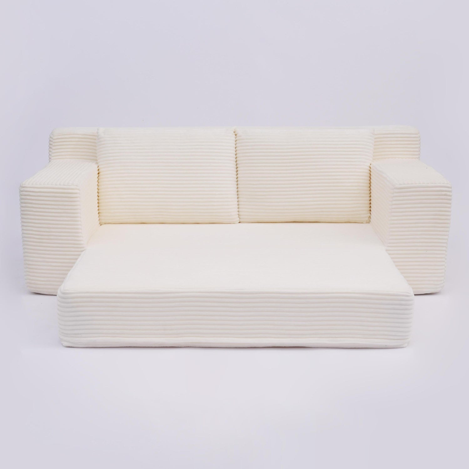 NEW Loveseat Sofa, Comfortable Deep Seat Sofa Bed, Modern Small Corduroy Couch for Living Room Bedroom,Reversible Cushion with Pillows,No Assembly Required,White