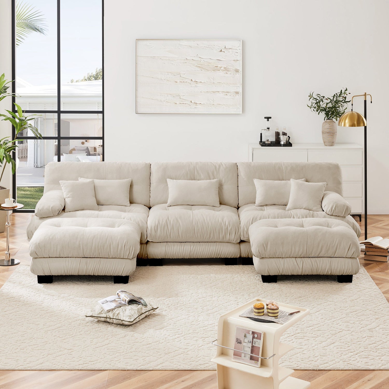 NEW Luxury Modular Sectional Sofa Couch - Oversized U Shaped Cloud Couch for Living Room,Deep Seat Sofa Couch with 2 Ottomans ,Chenille Light coffee