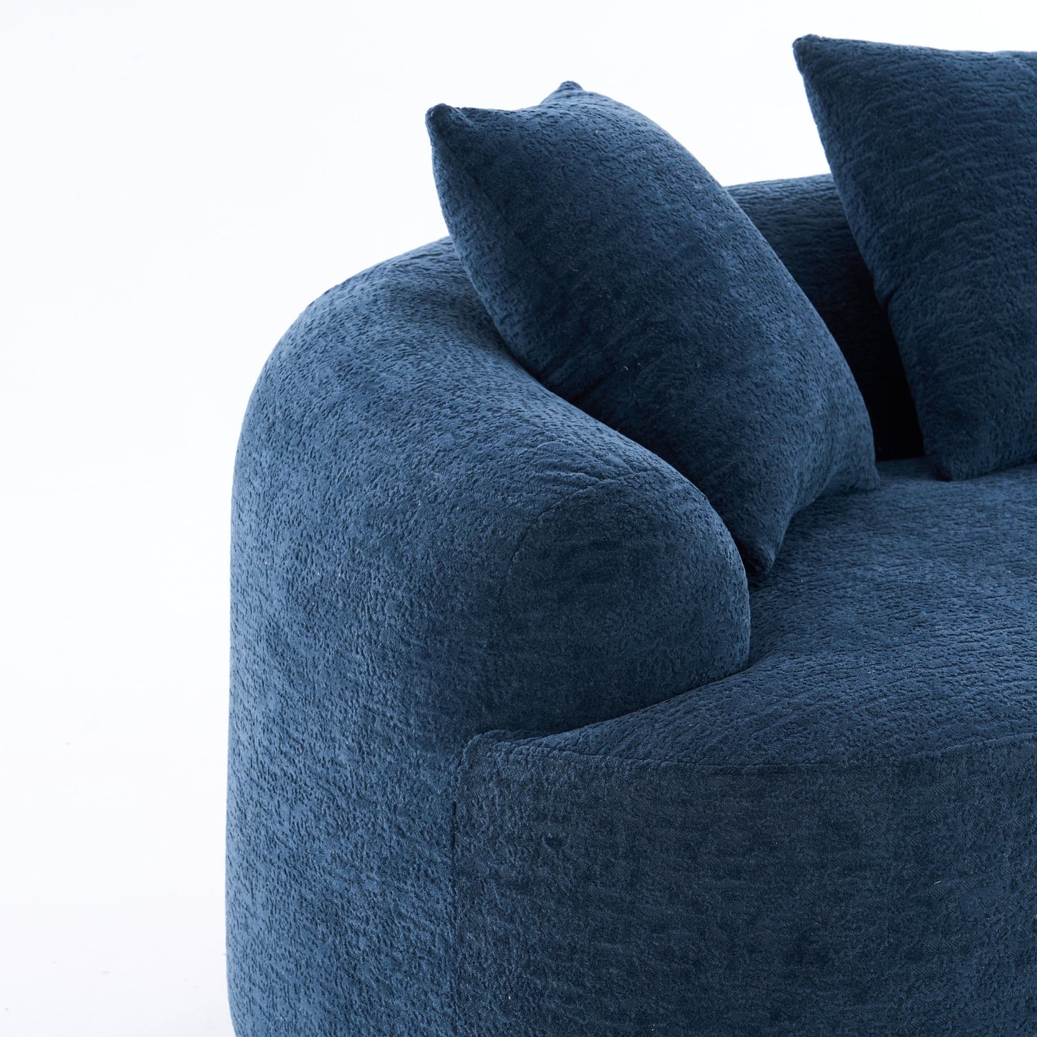 NEW LY-025S Chenille Curved Loveseat Blue Full Compression Sponge Sofa with 3 Pillows