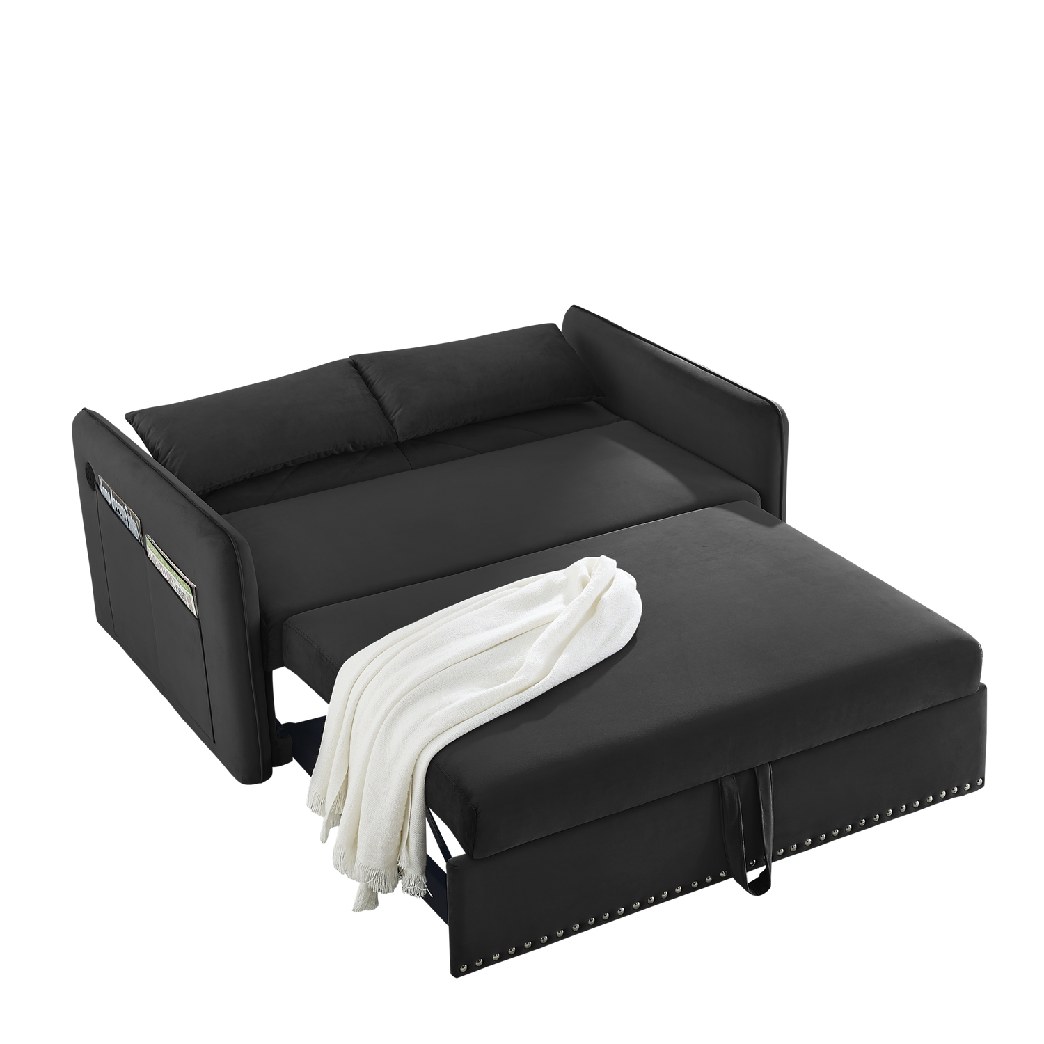 NEW MH' Soft Velvet Convertible 3 in 1 Adjustable Sleeper Pull Out Sofa Bed w/USB Port with 2 Lumbar Pillows and Side Pocket