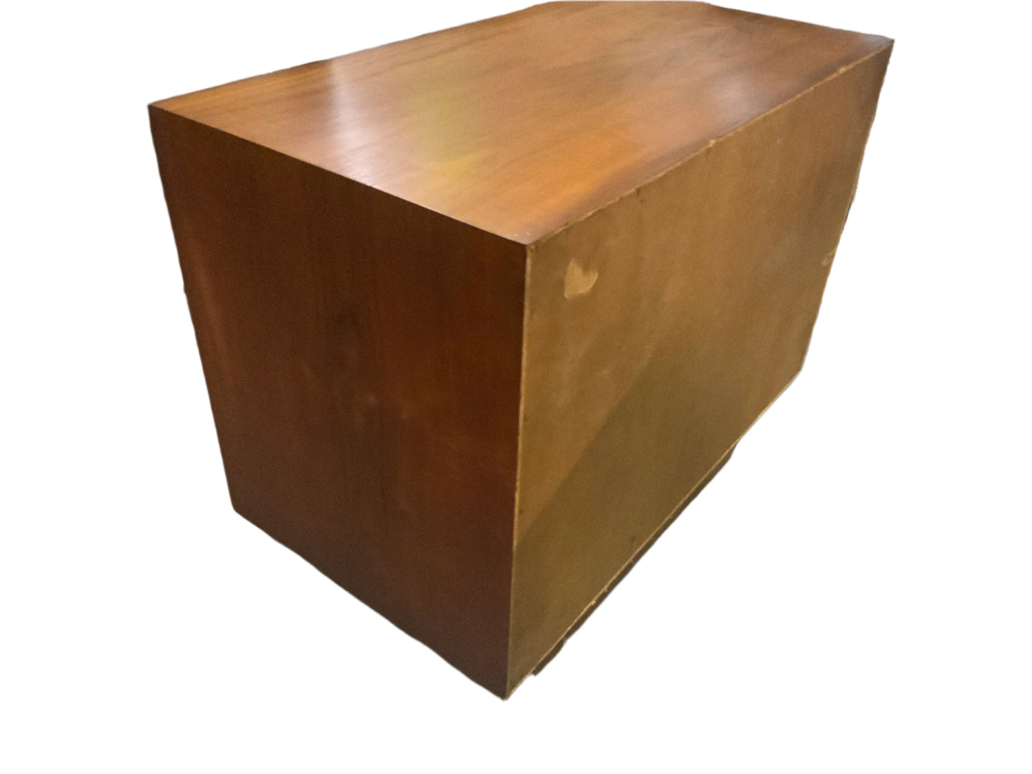 Mid Century Modern Platform Style Teak Wood Three Drawer Bachelors Chest Nightstand