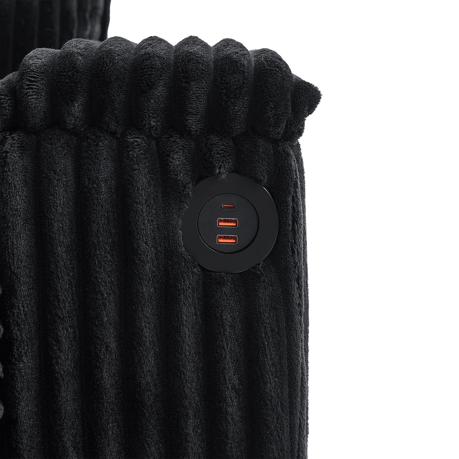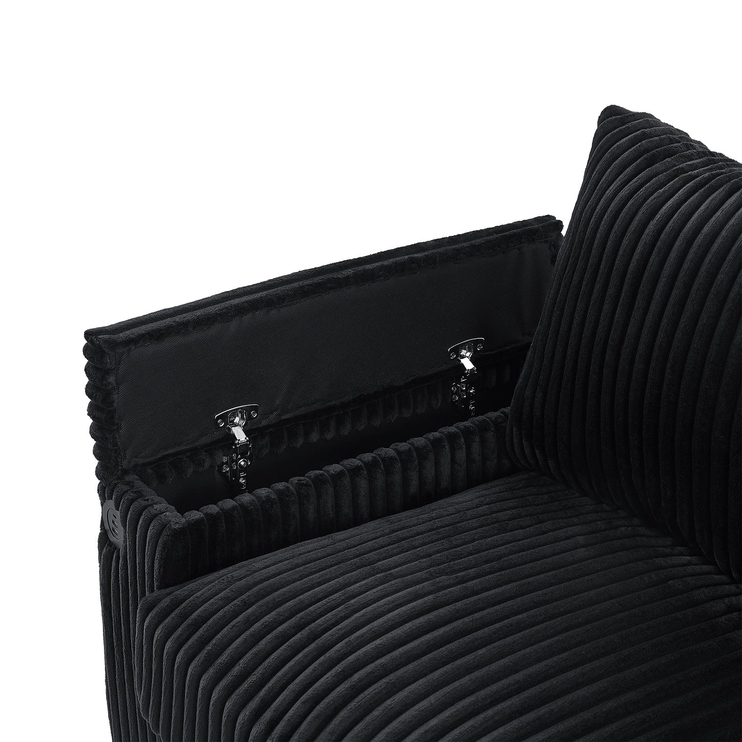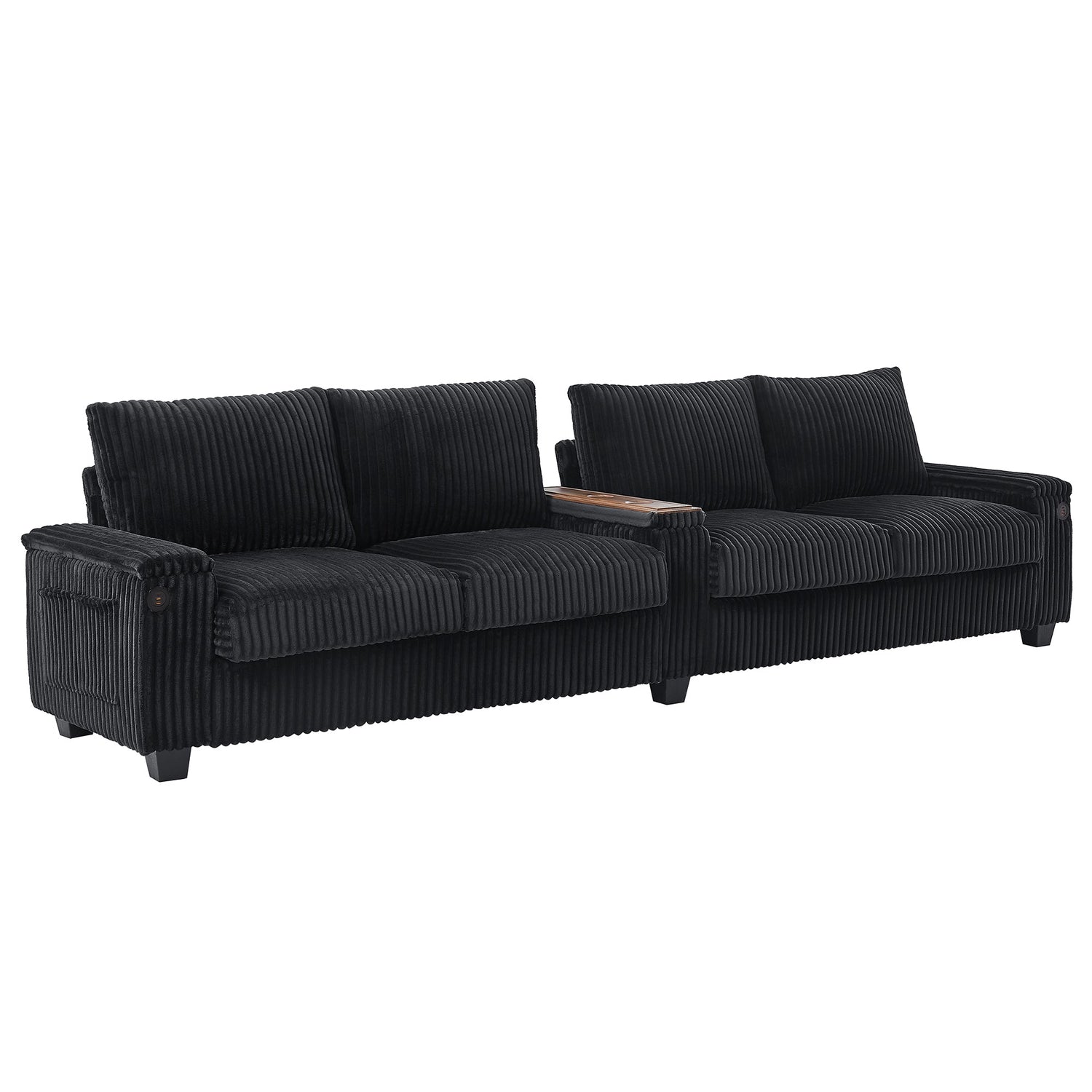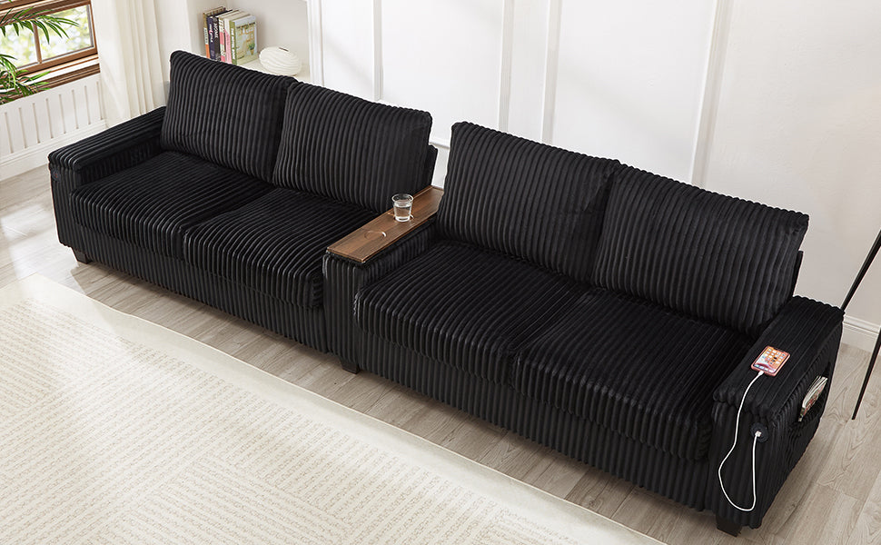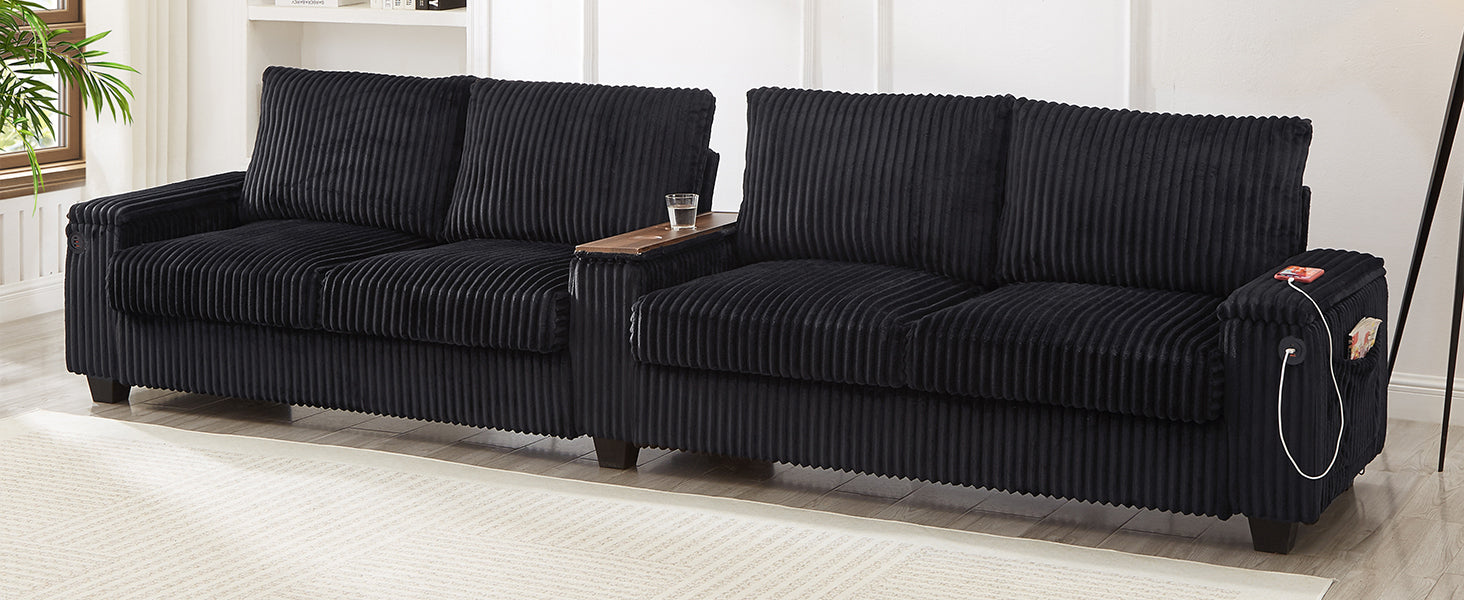NEW Modern 4-Seater Black Corduroy Sofa Couch with USB Ports and Hidden Storage