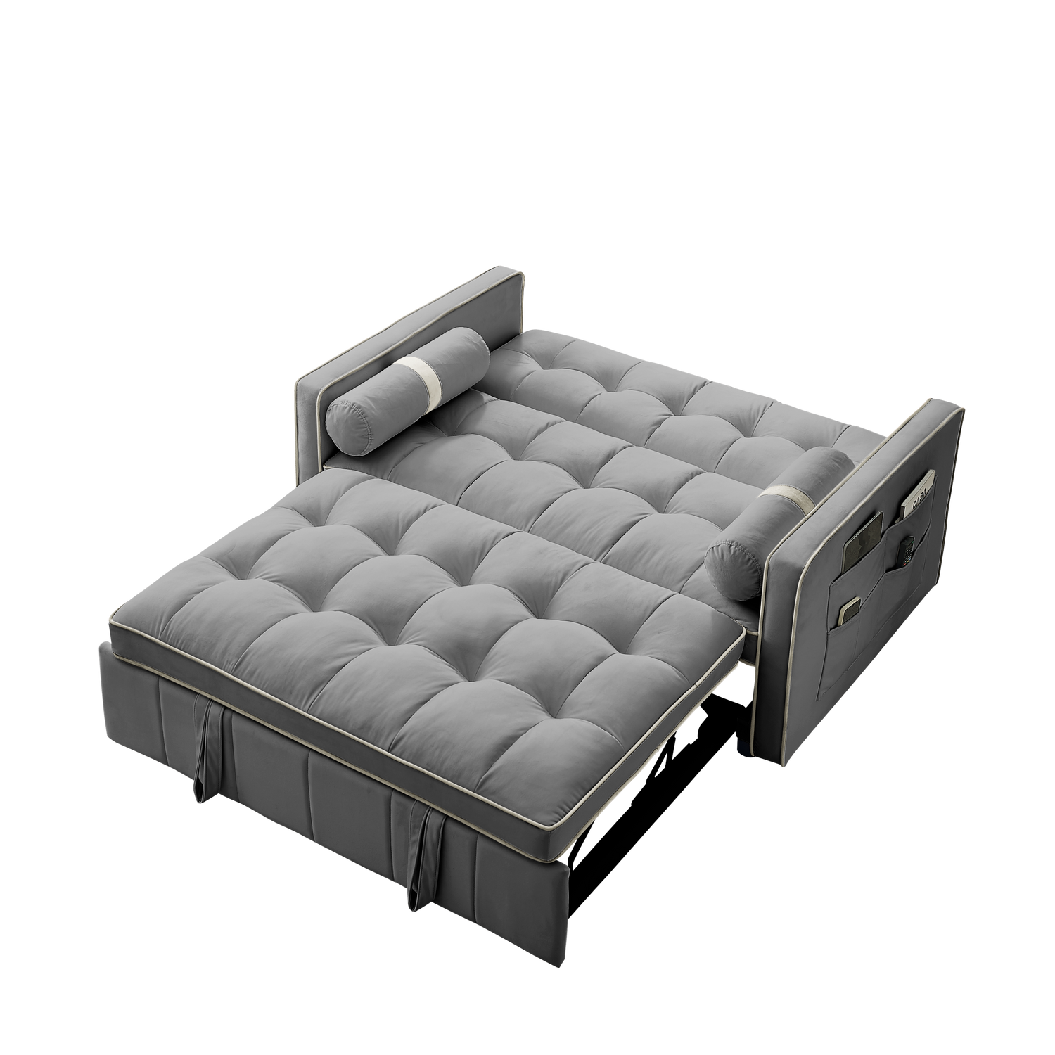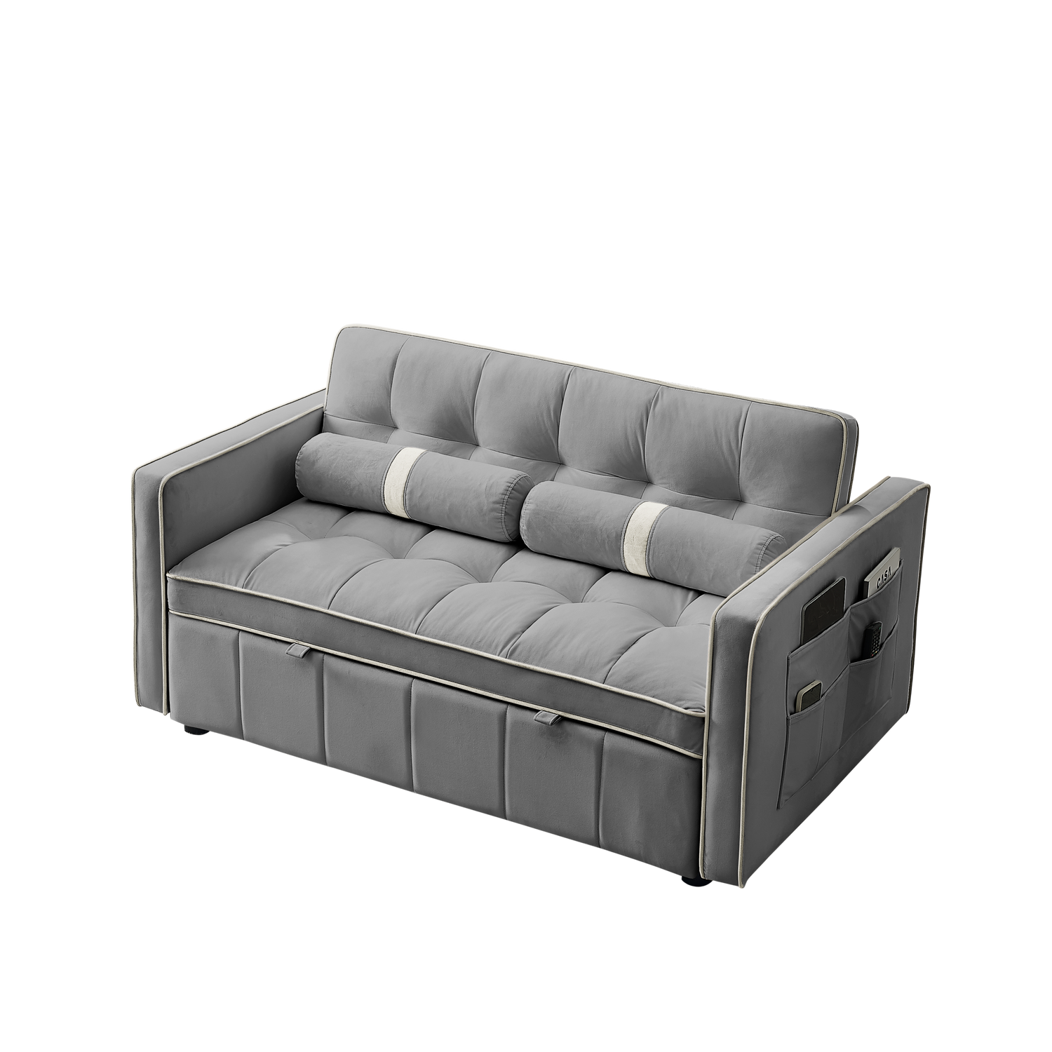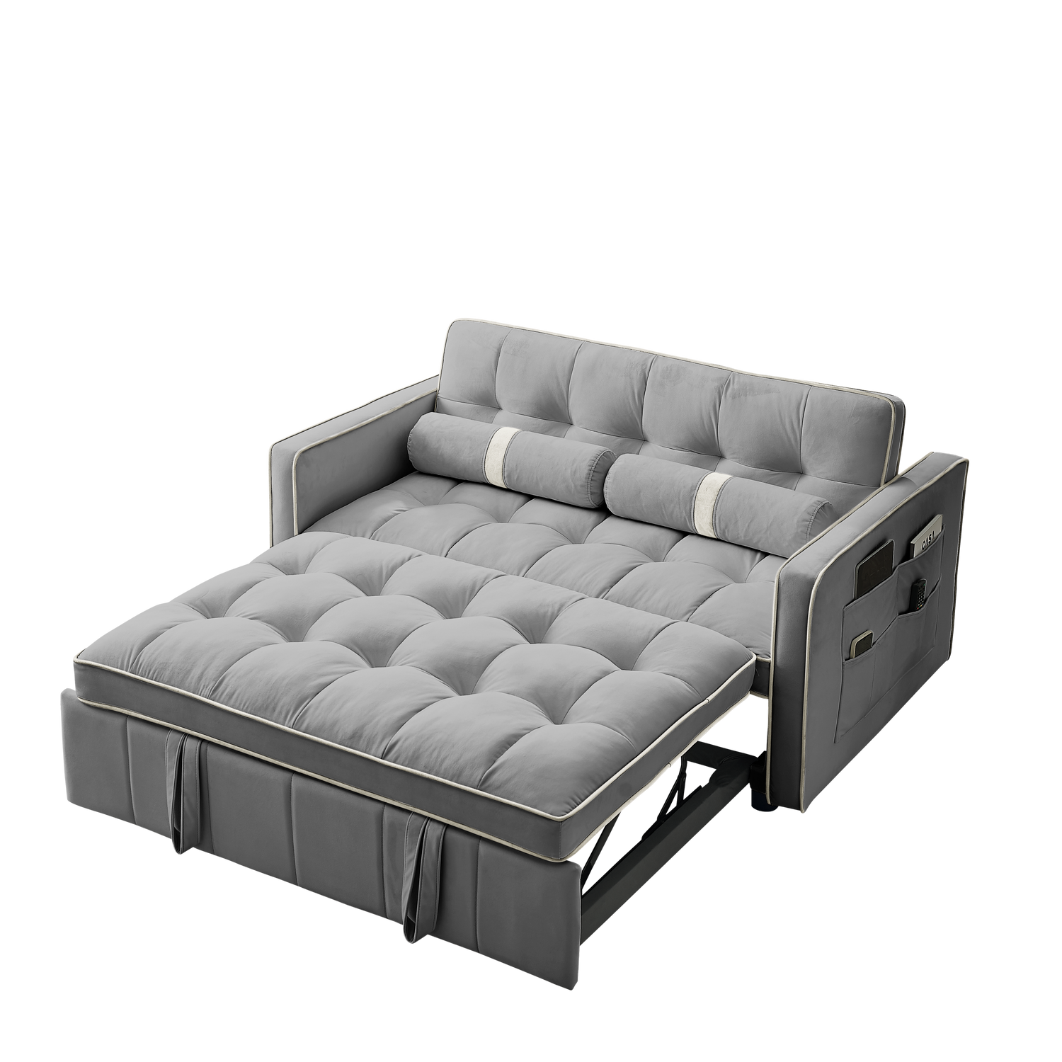 NEW Modern 55.5' Pull Out Sleep SofaBed 2 Seater Loveseat Sofa Couch with Side Pockets and Adjustable Backrest