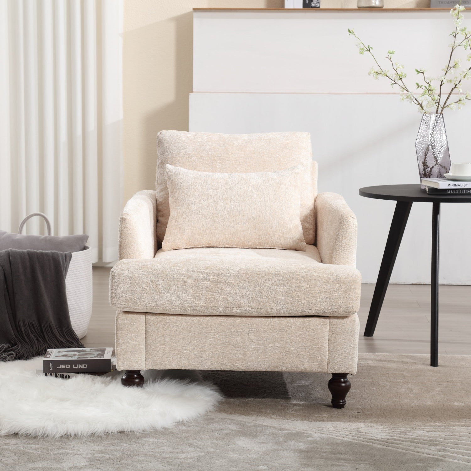 NEW Modern Accent Lounge Chair with Tufted Club Design, Beige Chenille Upholstery, Solid Wood Frame for Living Room and Bedroom