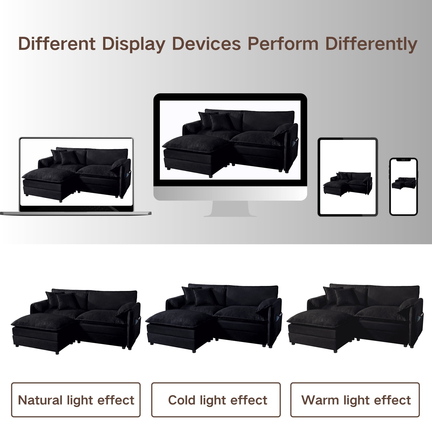 NEW Modern Chenille Deep Seat Sectional Sofa Cloud Couch with Ottoman, Comfy Love Seat Upholstered Modular L Shaped Couch, Black