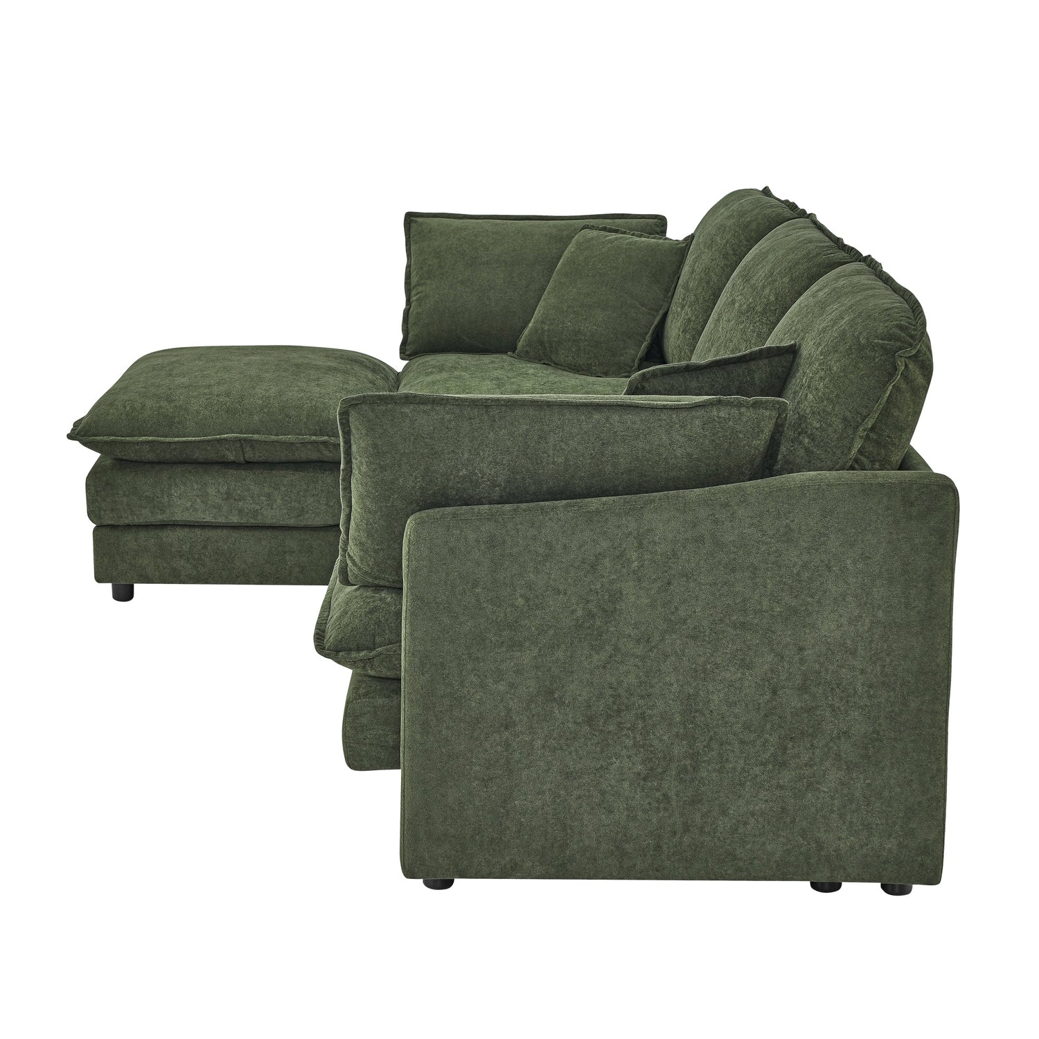 NEW Modern Home Living Room L-Shaped Sectional Sofa Couches with Ottoman, Convertible Oversized 4 Seater Couch Towel Fabric, Green
