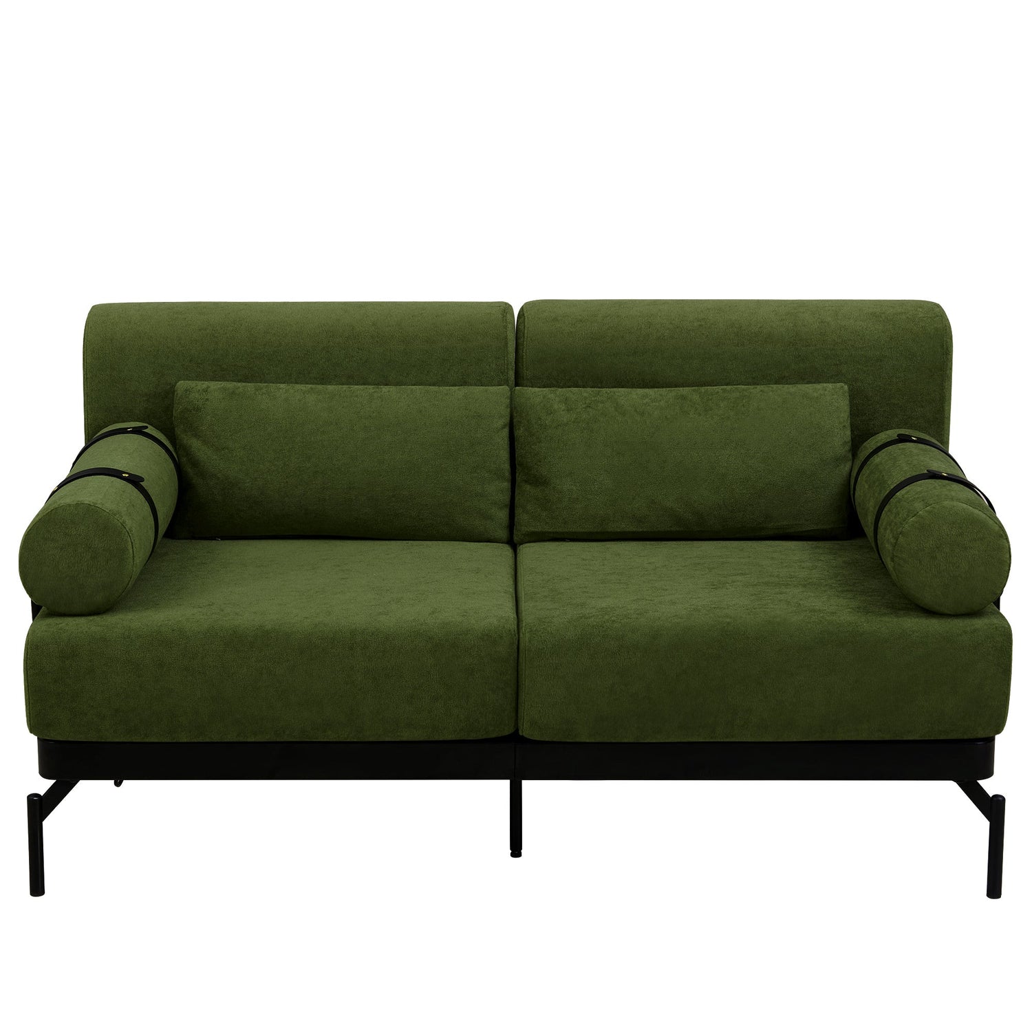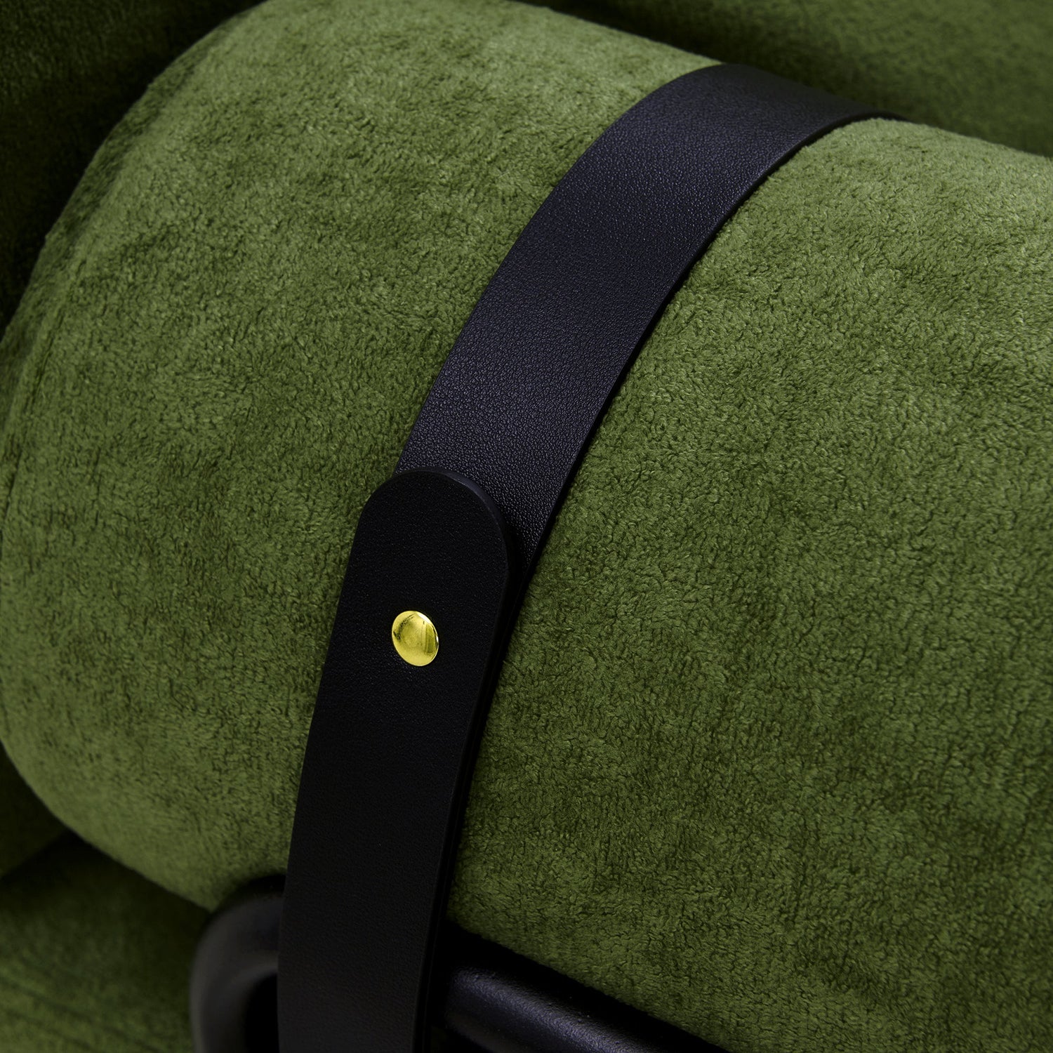 - Unique Cylindrical Armrest Design - This loveseat sofa features two uniquely designed cylindrical armrests wrapped with adjustable faux leather straps, offering both aesthetic appeal and practical support. The bold, modern design adds an eye-catching architectural accent, setting it apart from traditional sofas.