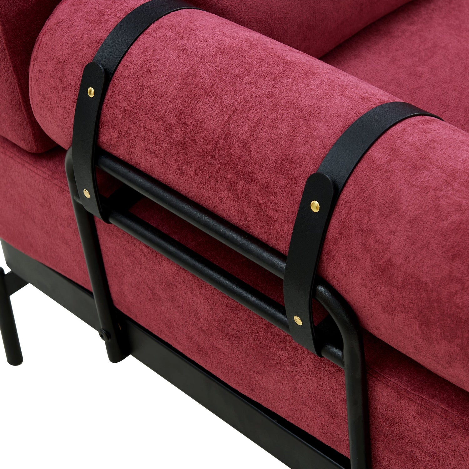 - Unique Cylindrical Armrest Design - This loveseat sofa features two uniquely designed cylindrical armrests wrapped with adjustable faux leather straps, offering both aesthetic appeal and practical support. The bold, modern design adds an eye-catching architectural accent, setting it apart from traditional sofas.