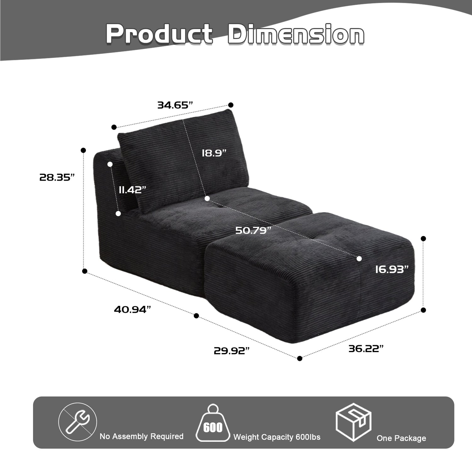 NEW Modern Black Corduroy Fabric Memory Foam Compressed Single Chaise Lounge Cloud Modular Sectional Sofa with Movable Ottoman