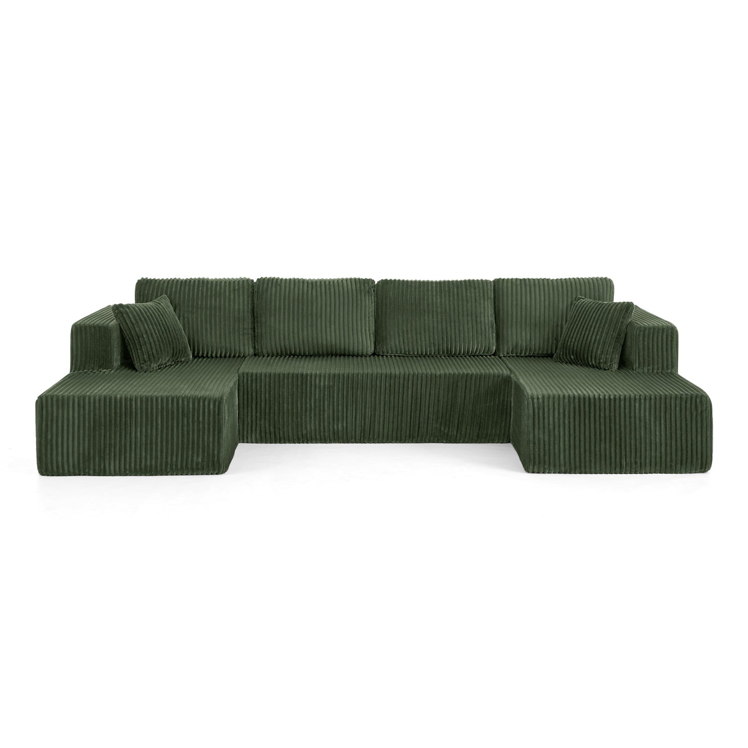 NEW Modern Minimalist U Shape Modular Sectional Sofa Sleeper in Green Corduroy with Foam Filling