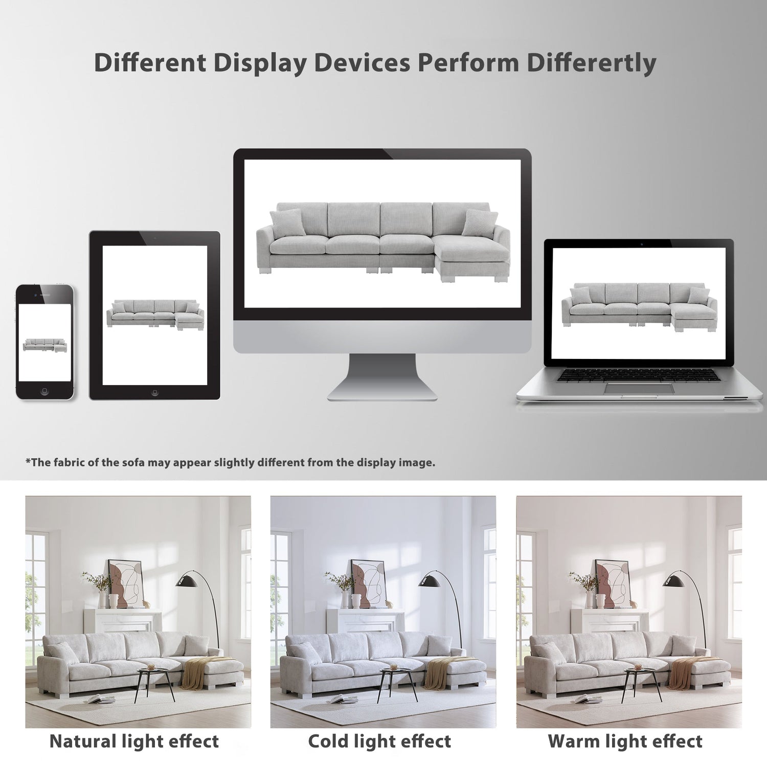 NEW Chenille Fabric Light Gray Modern Oversized L-Shaped Sectional Sofa with Chaise and Pillows