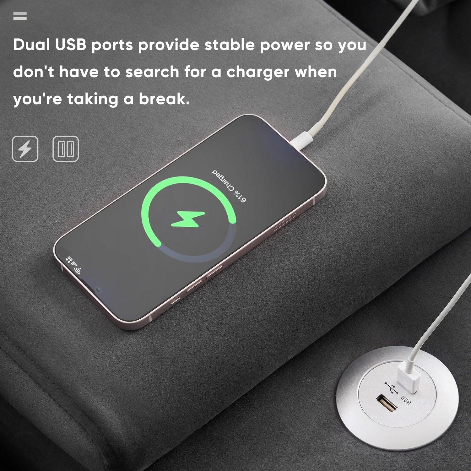 This modern sectional sofa has a classic design that will never go out of style. The upholstery and sleek lines blend perfectly to create a harmonious appearance that can suit any decor style and enhance your space. It also has storage space, cup holders and USB ports for convenience.