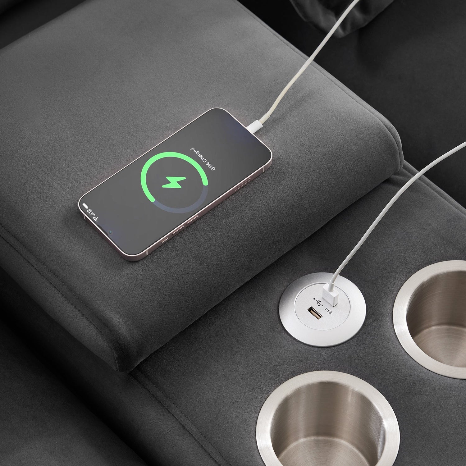 - Made for Convenience : The sofa comes with a console that can be stored, cup holders and USB ports for convenience.