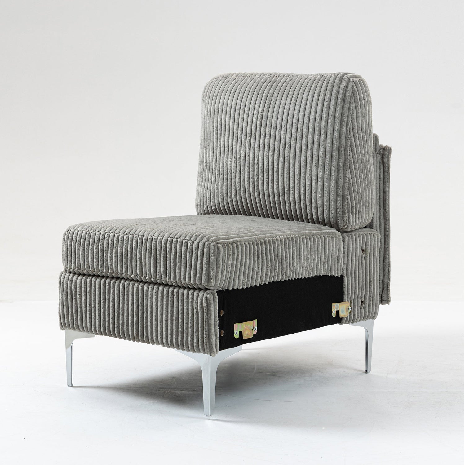 NEW Modular Sectional Sofa Armless Seat Module, Corduroy Accent Chair with Back Cushion, Gray