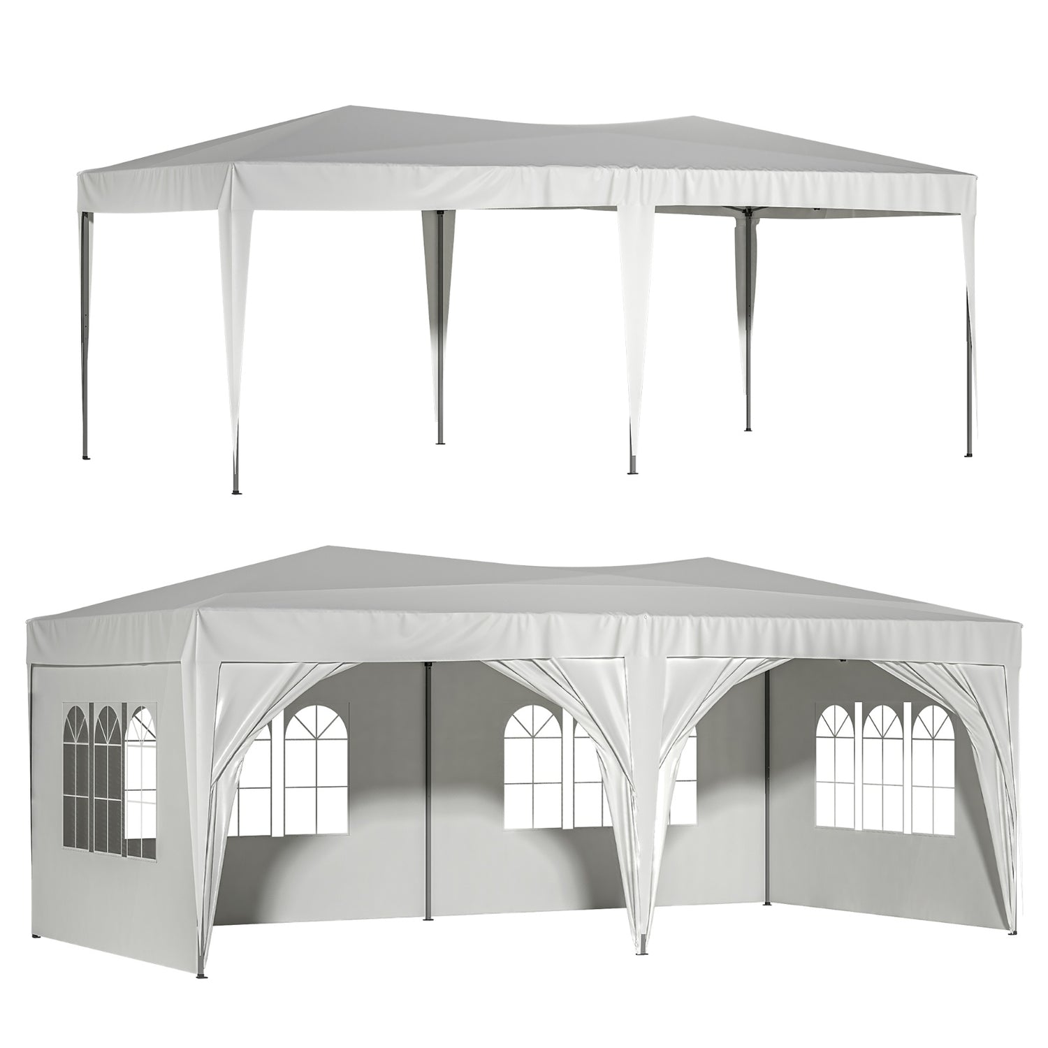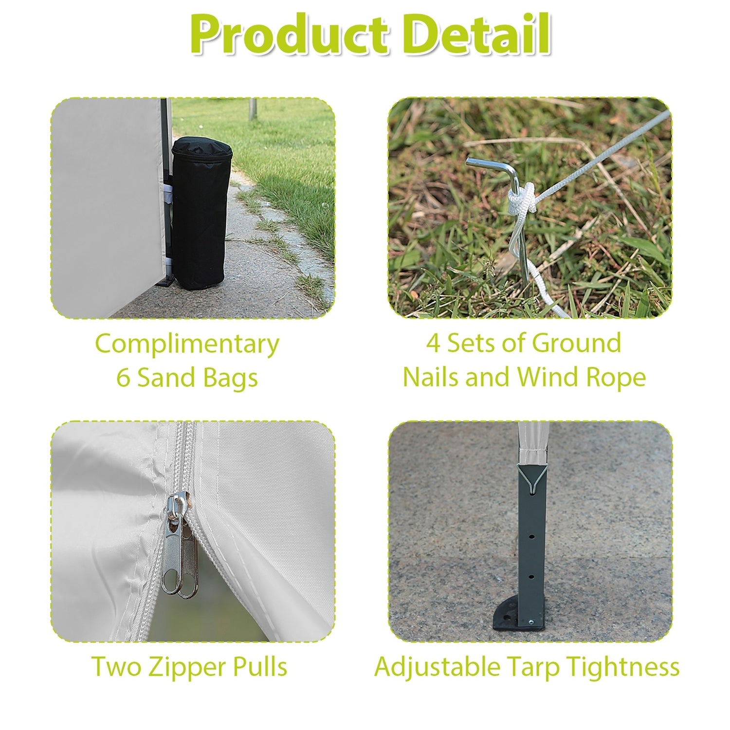 10'x20' EZ Pop Up Canopy Outdoor Portable Party Folding Tent with 6 Removable Sidewalls + Carry Bag + 6pcs Weight Bag Beige White