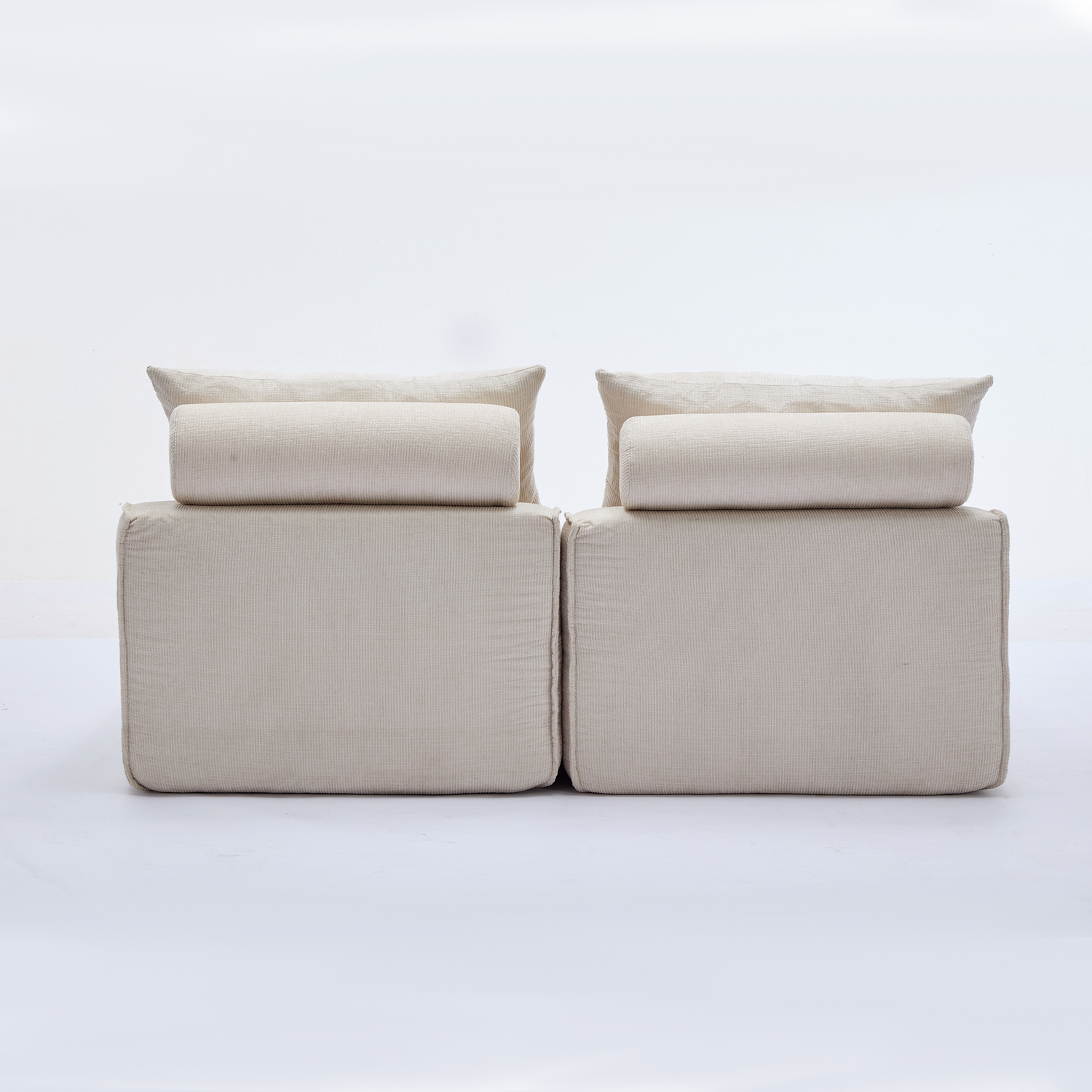NEW Modular Sofa,No Armrests,At will DIY,Soft Chenille Fabric,Neck Pillow-Back Lounge Sofa Chair,Reading Nook, or Apartment Living, Lumbar Pillow,2 Seats,Upholstered,Beige