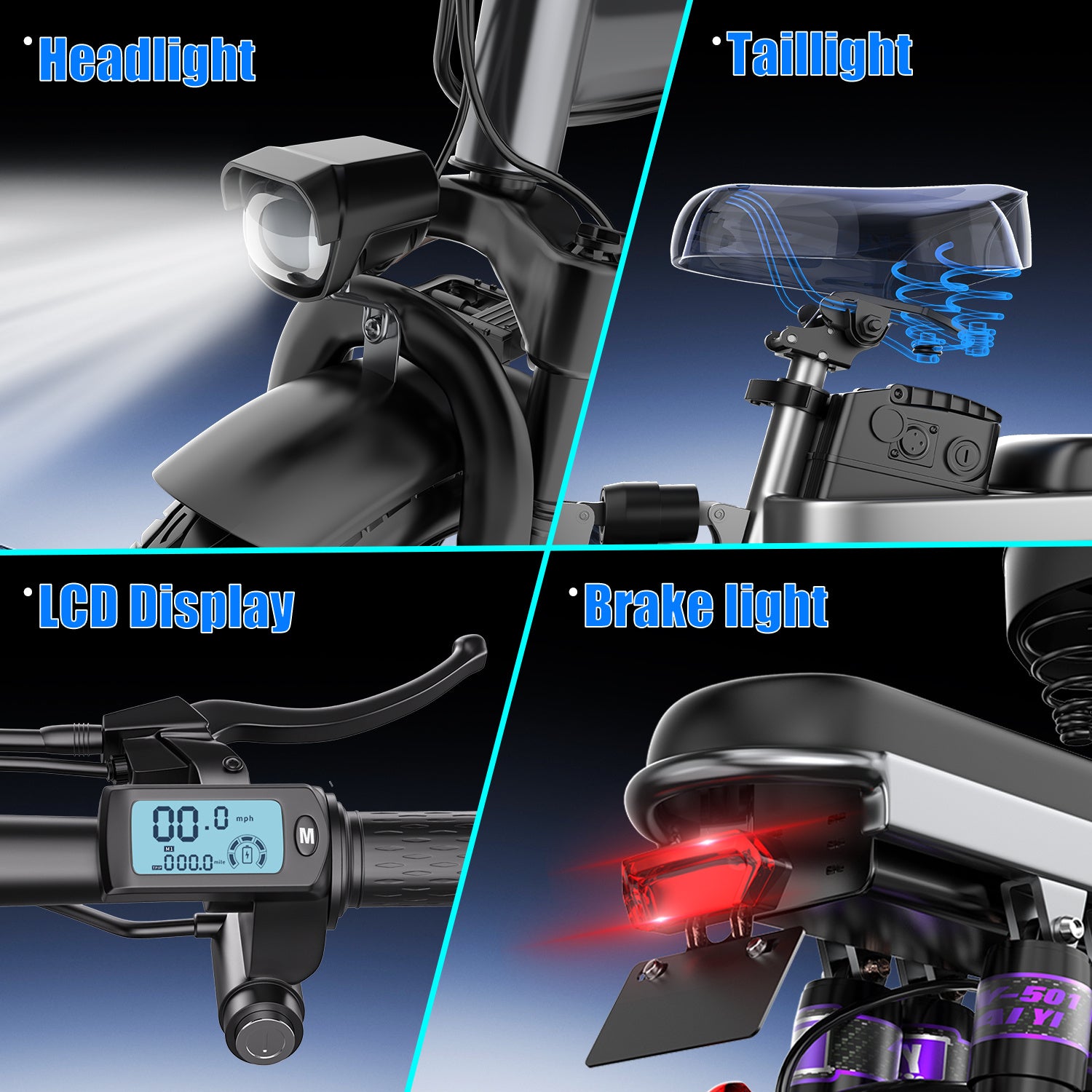 NEW ASKGO Adult Men Women E-Bike 48V 15AH Removable Battery 25MPH 500W Brushless Motor, Lightweight 14'' Tire LCD Display Electric Bike Bicycle