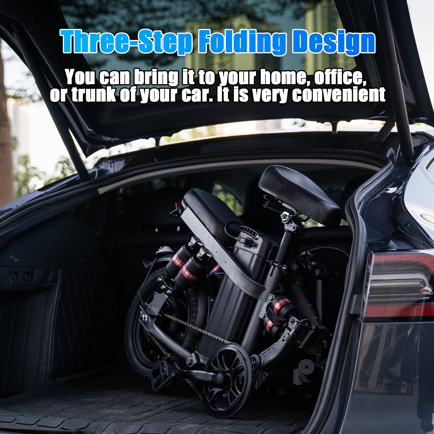 The e bikes for adults electric is designed as a foldable design, simple three-step folding system, the size after folding is 27x17x26", and the seat and handlebars can also be adjusted to the height of everyone's preferences. It can easily fit in your trunk or take it into public transport, such as subways and buses. We have designed 3 gearshifts to easily set and select your preferred speed.