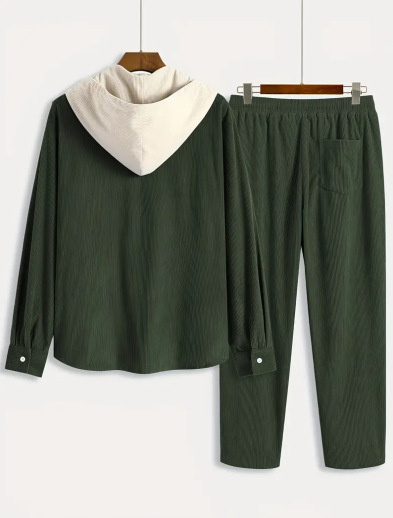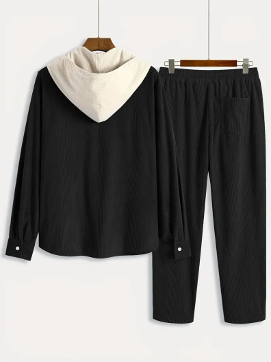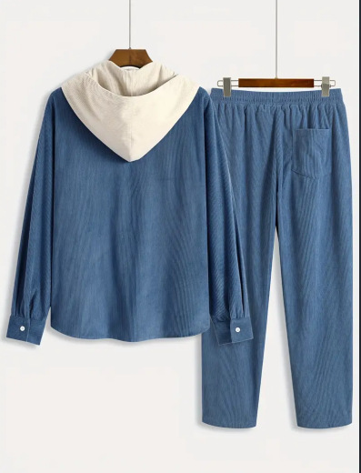 New Men's Waffle Hooded Hoodie Trendy Two-piece Suit