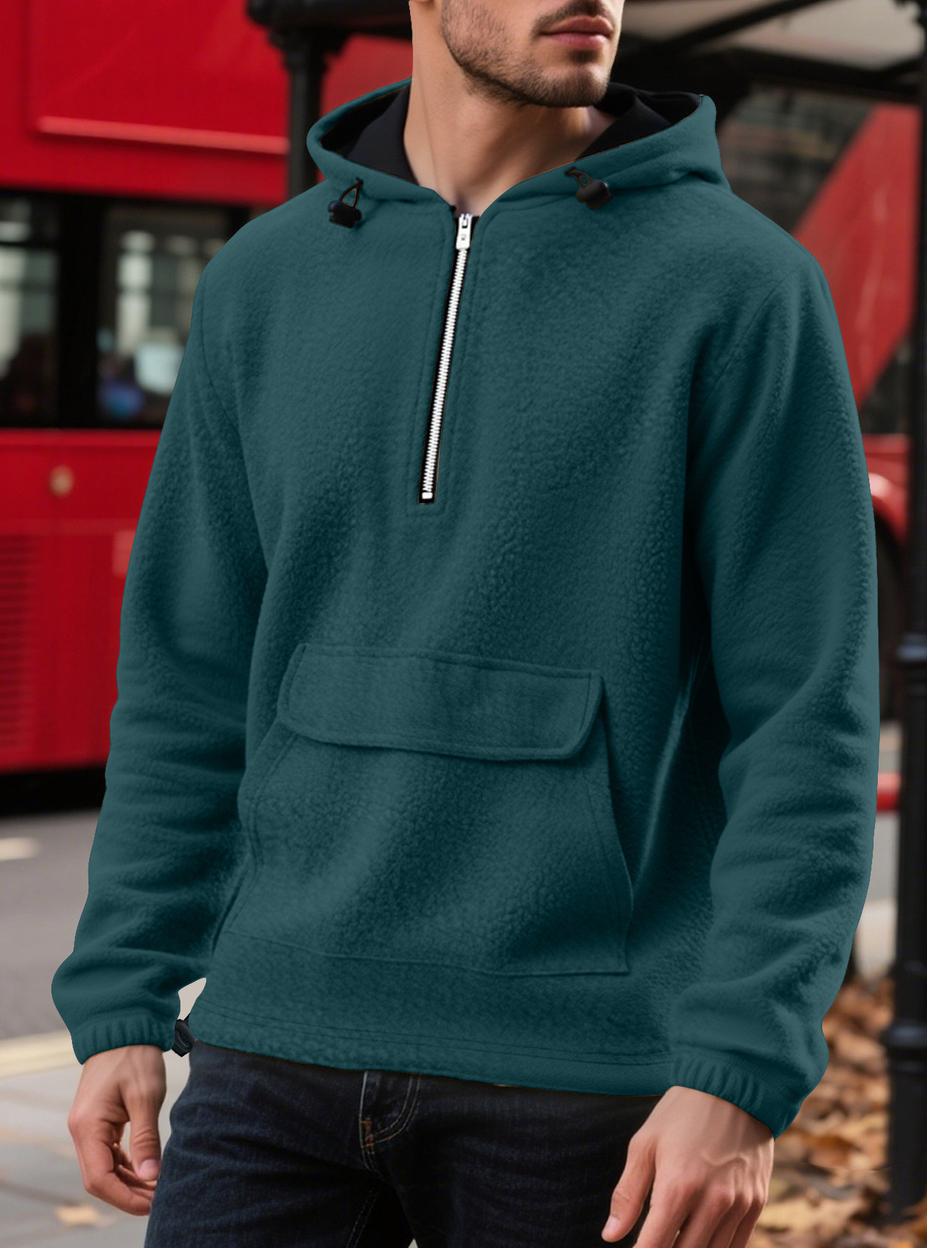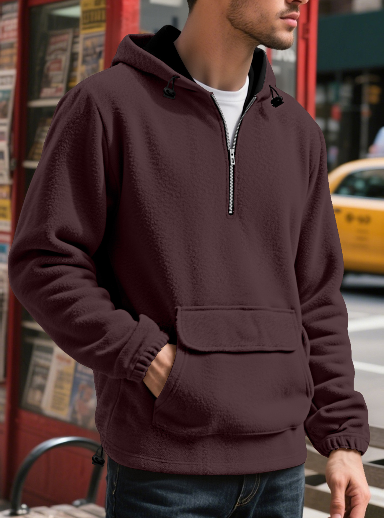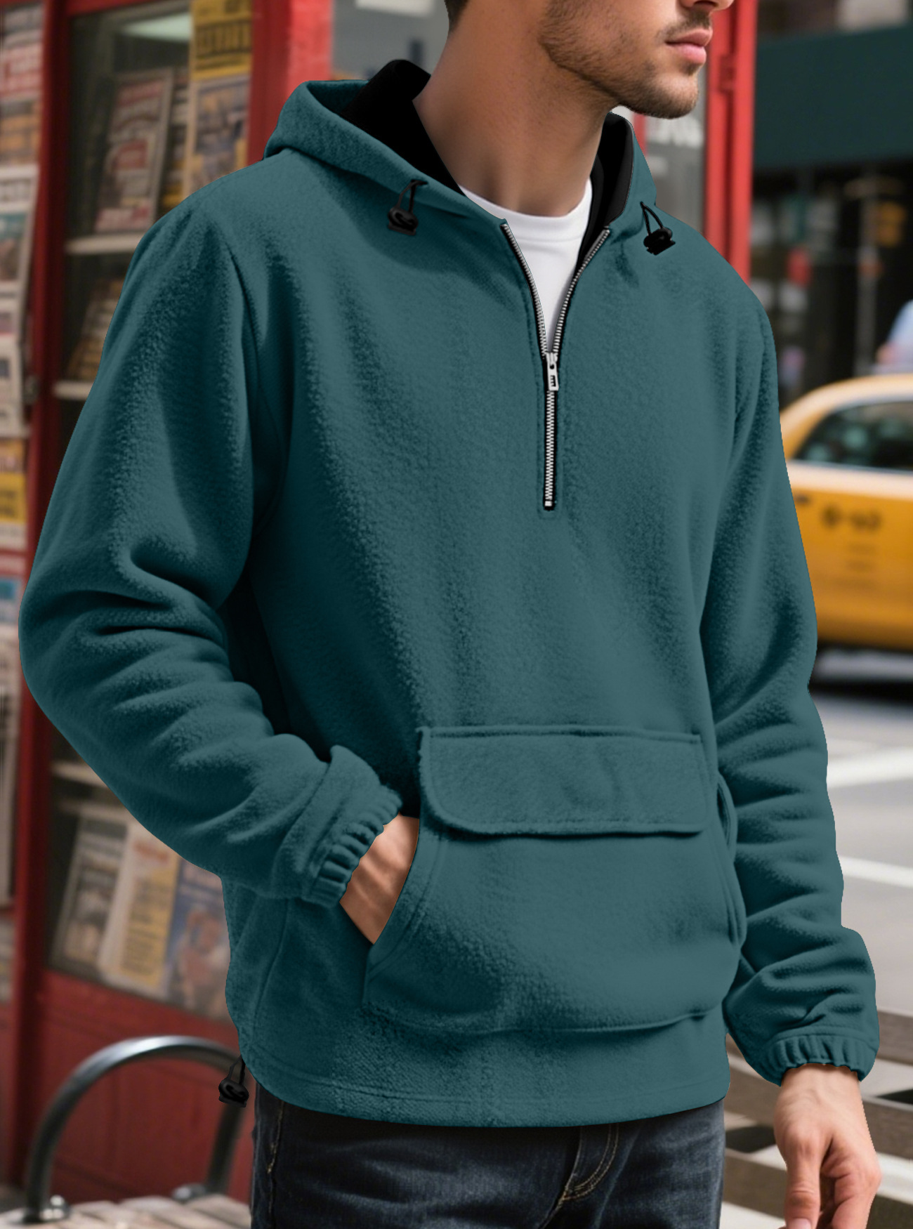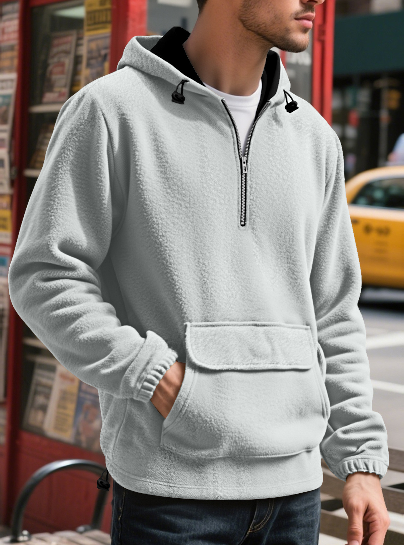 New Padded Fleece Sweater Solid Color Half Zip Hooded Work Clothes Pullover