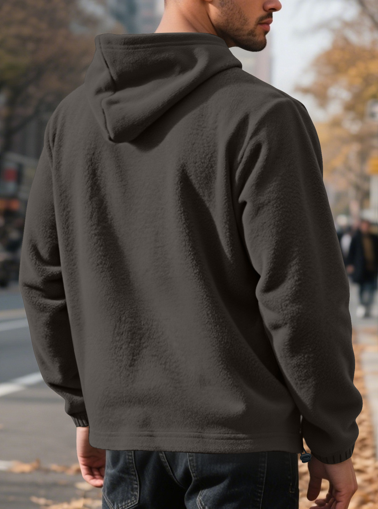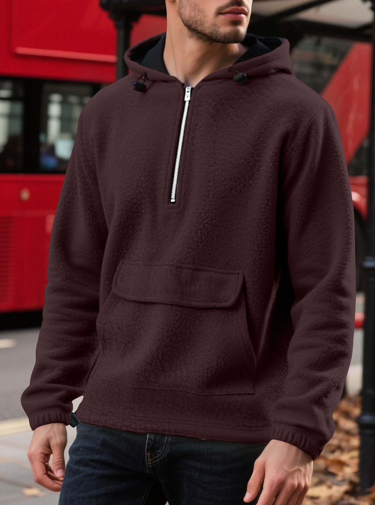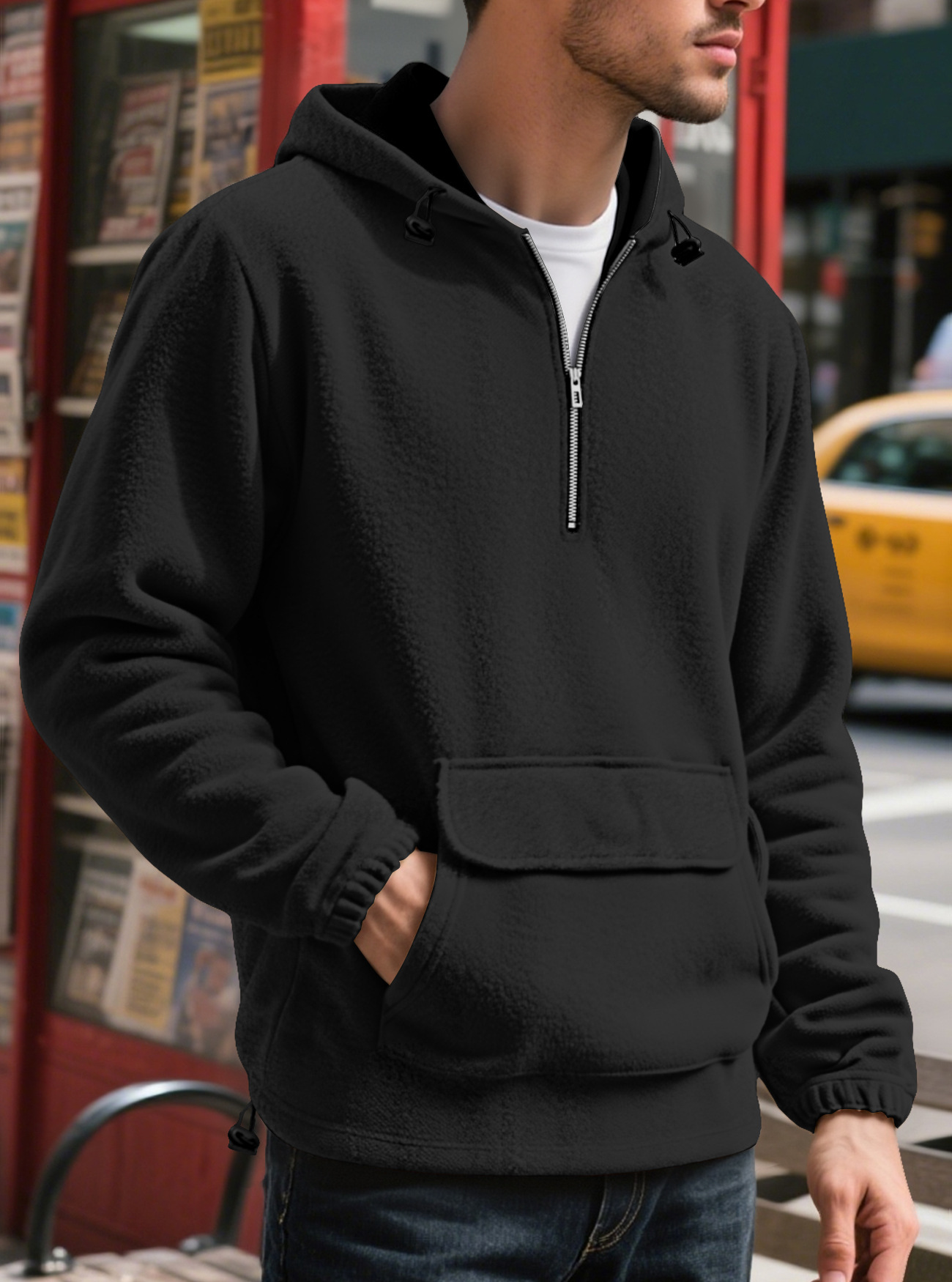 New Padded Fleece Sweater Solid Color Half Zip Hooded Work Clothes Pullover
