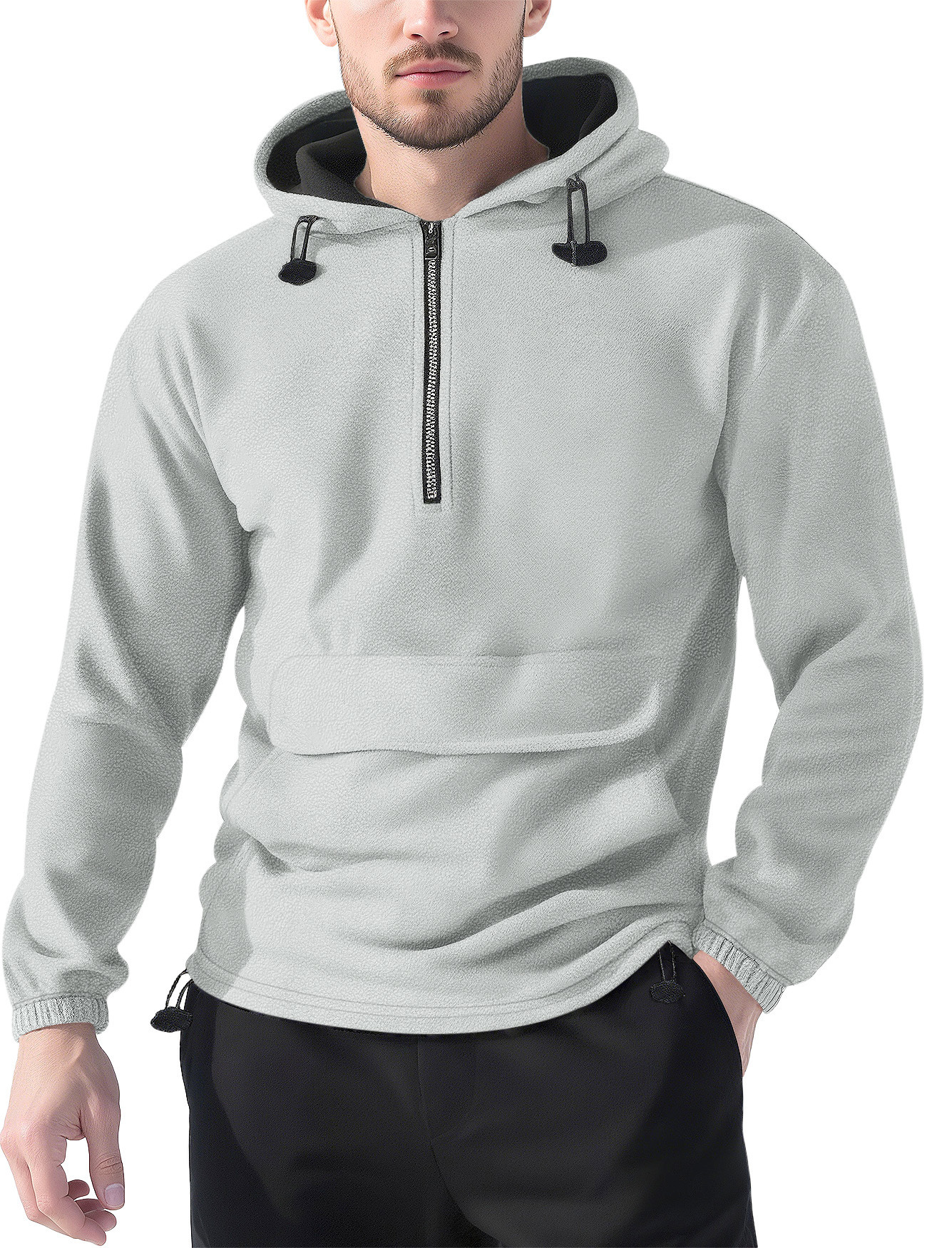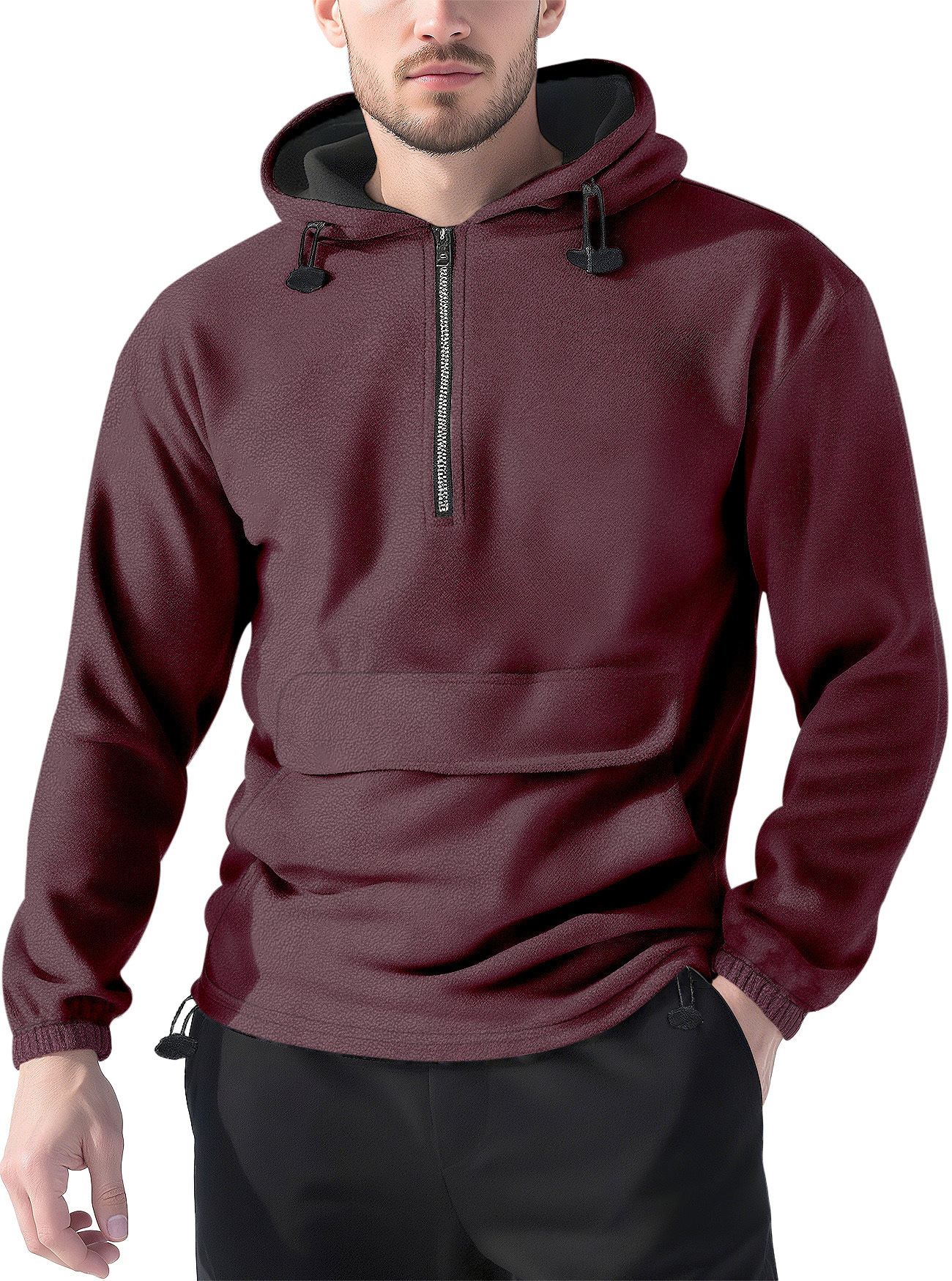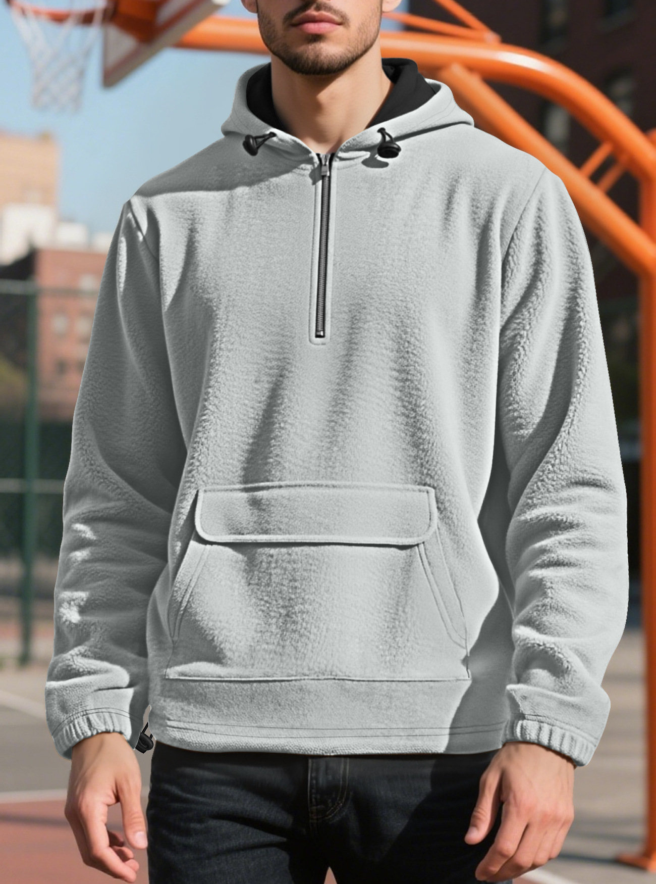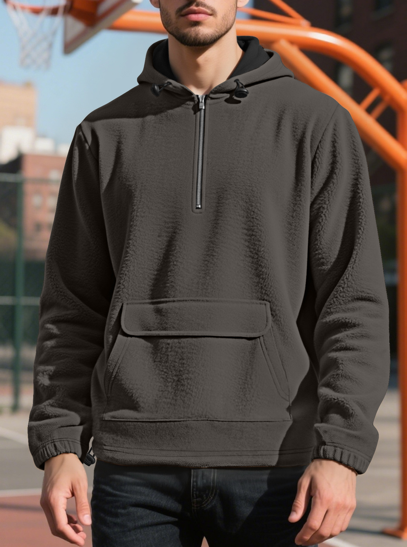 New Padded Fleece Sweater Solid Color Half Zip Hooded Work Clothes Pullover