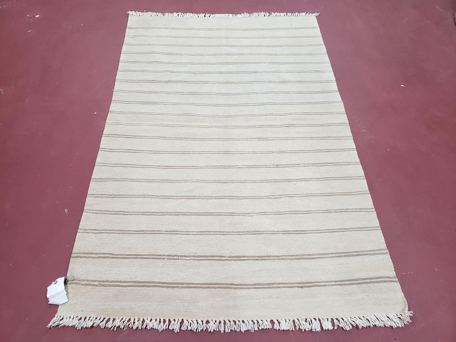 USED New Striped Turkish Kilim Area Rug 4x6 ft, Hand-Knotted, Wool, Light Gray, Earth Tone Decor, Flatweave Kilim, Two Toned Rug, Southwestern