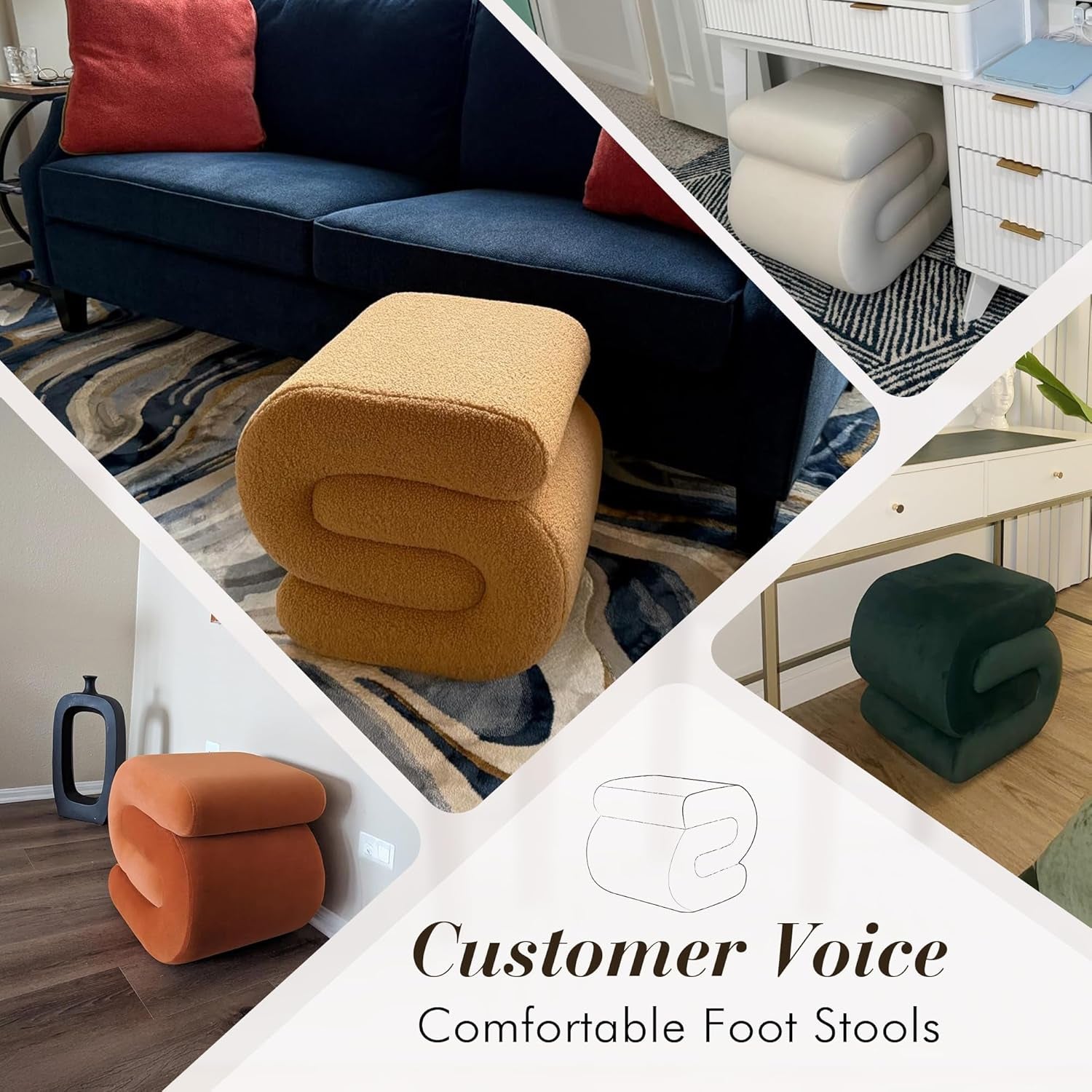 - S-shaped design that invites seating on four sides— perfect as a footrest, extra seat, or decorative pouf.
