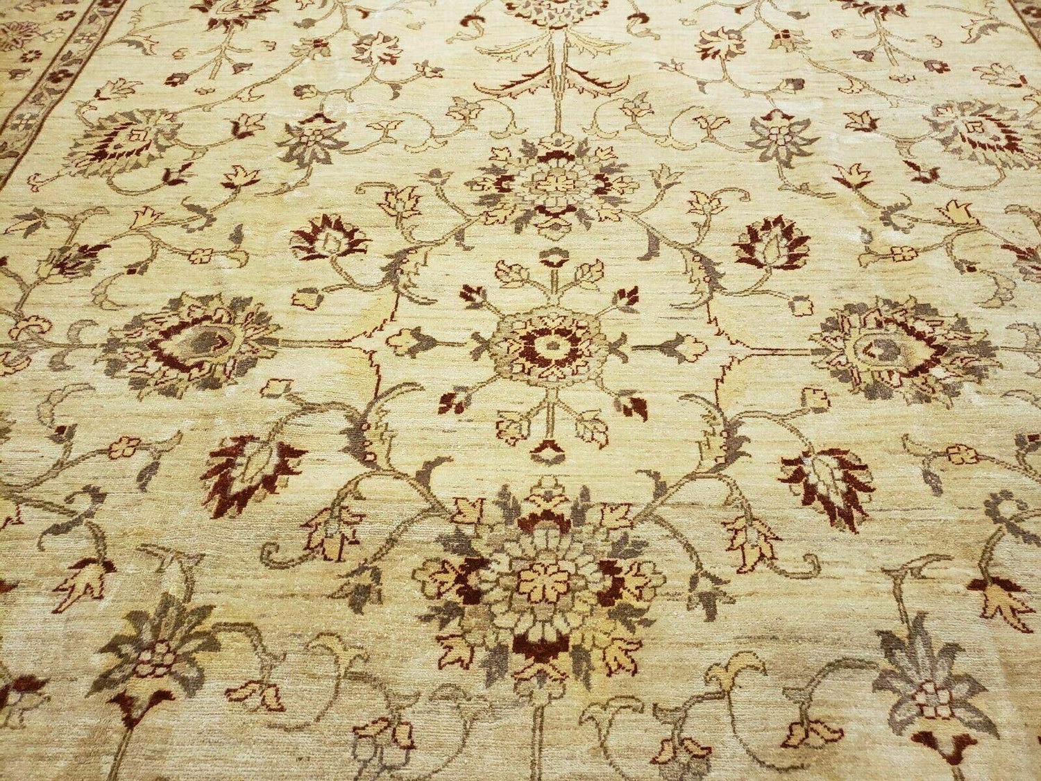 USED Oushak Rug 10x14 Neutral Colors Handmade Peshawar Wool Carpet Oatmeal Beige
