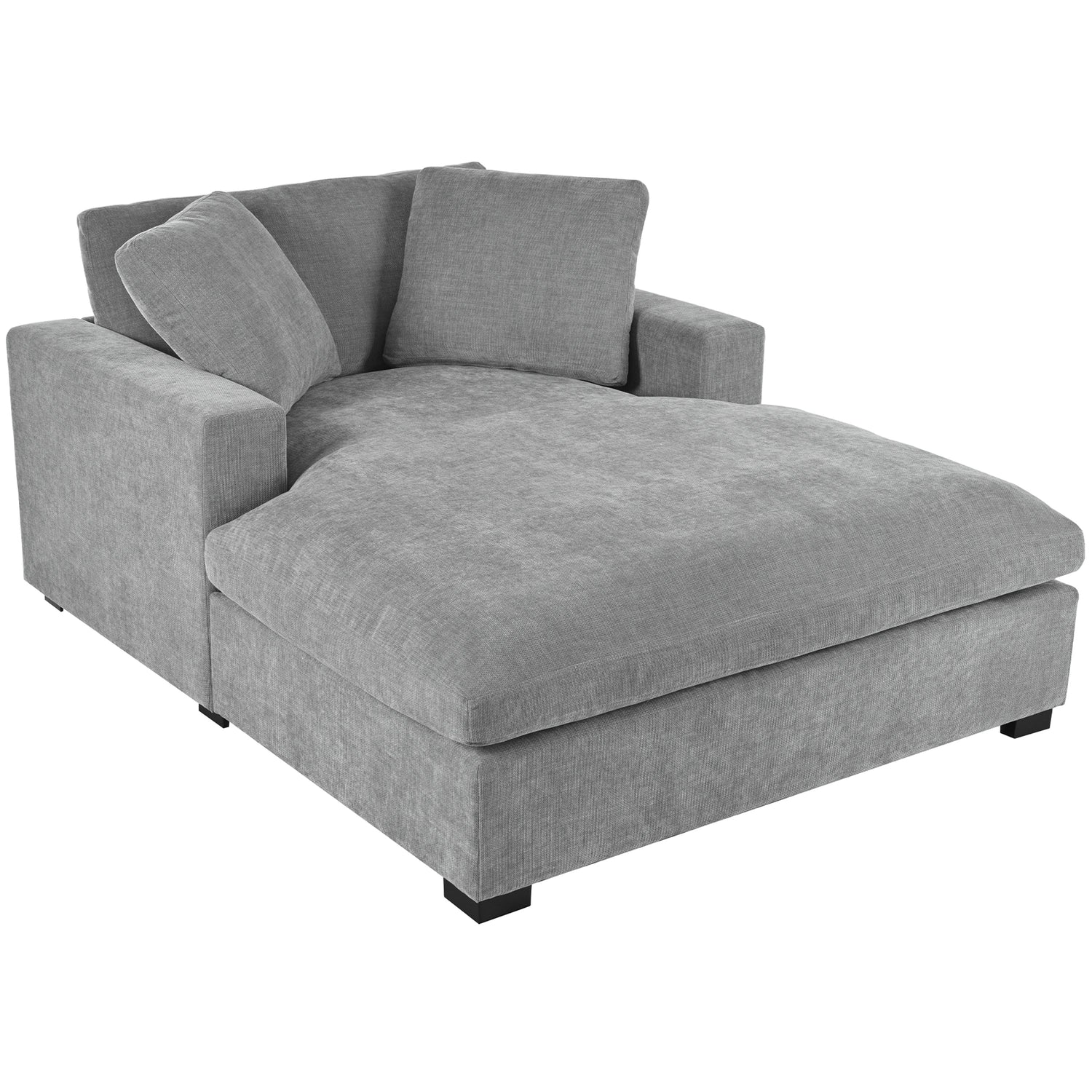 NEW Oversized Chaise Lounge Chair with Solid Wood Legs and Soft Upholstery, Gray