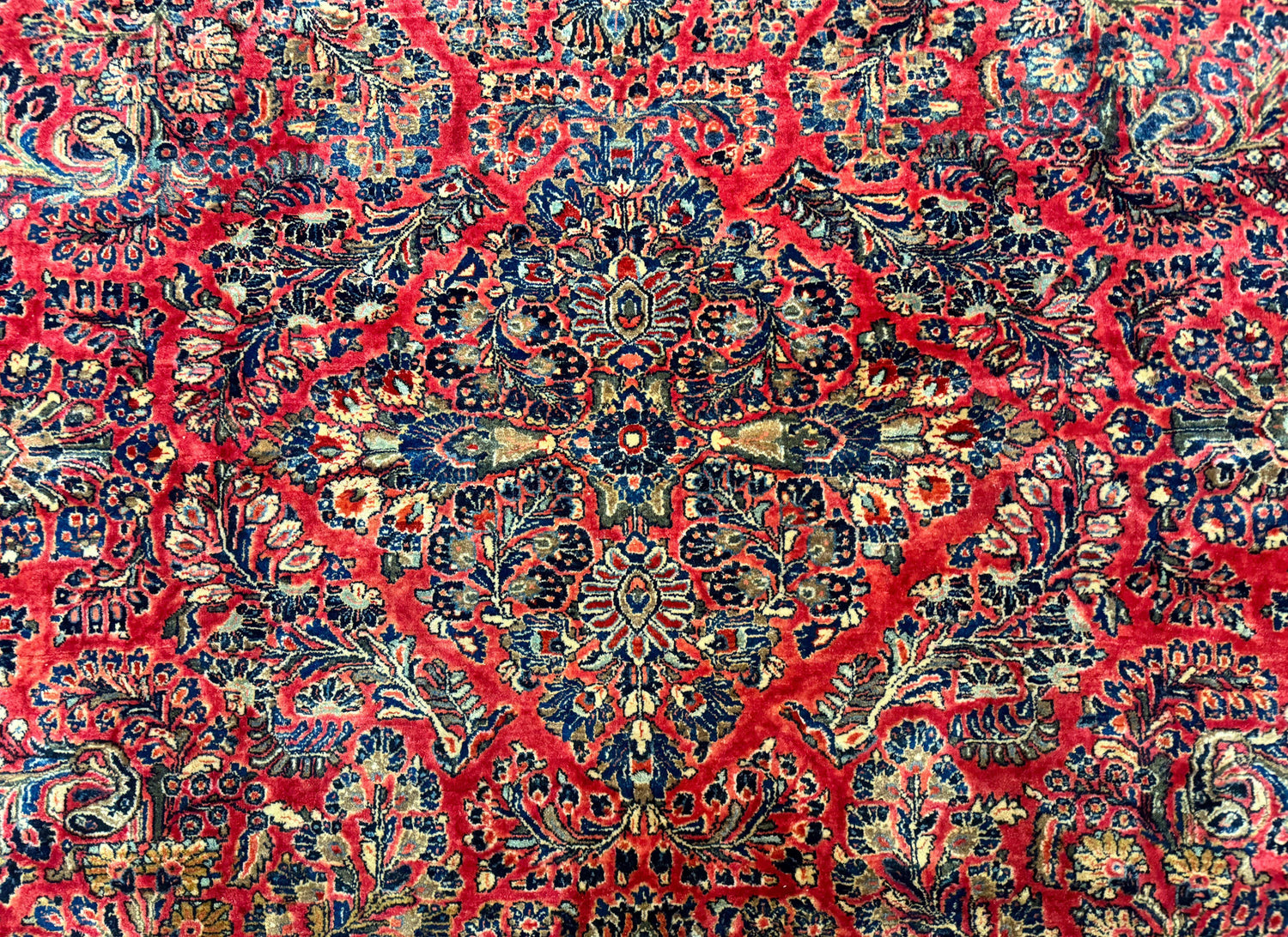 Sarouk rugs are among the most beloved of Persian carpets, particularly those woven in the early 20th century for the American market. Known for their refined floral patterns, high-quality wool, and dense construction, these rugs often feature a central medallion or allover sprays against a rich red or blue ground. Woven in the Arak region of Iran, antique Sarouk rugs are especially prized for their durability and their ability to harmonize with both traditional and transitional interiors.