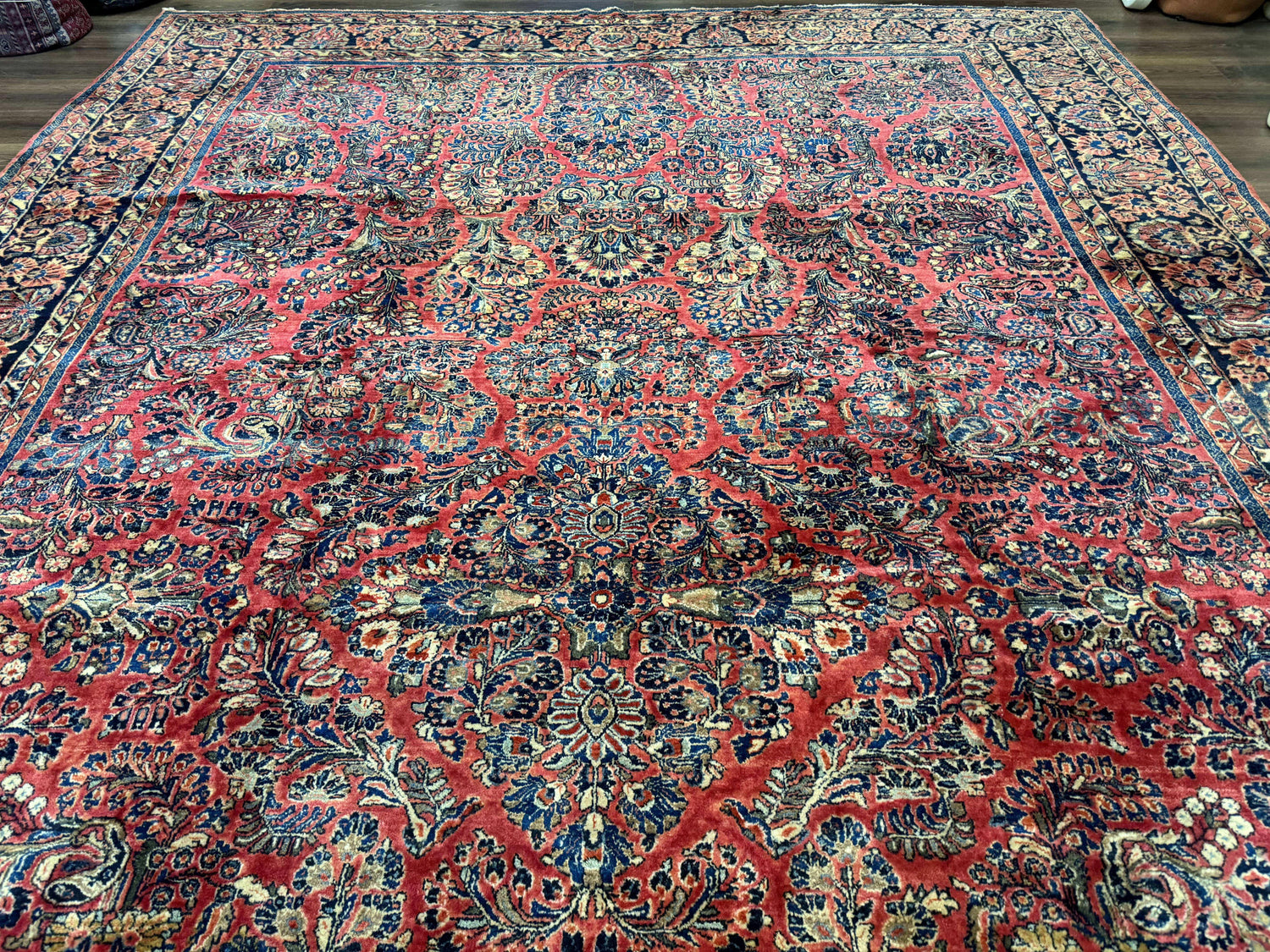 USED Palace Size Persian Sarouk Rug 10x16, Rare Size, Red, Large Antique Persian Carpet