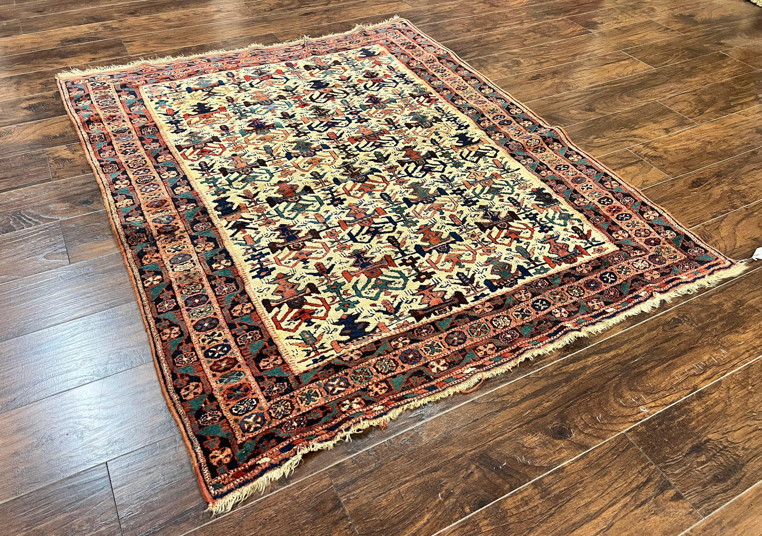 USED Persian Afshar Rug 5x6, Allover Repeated Motif, Wool Tribal Carpet, Handmade Semi Antique Rug