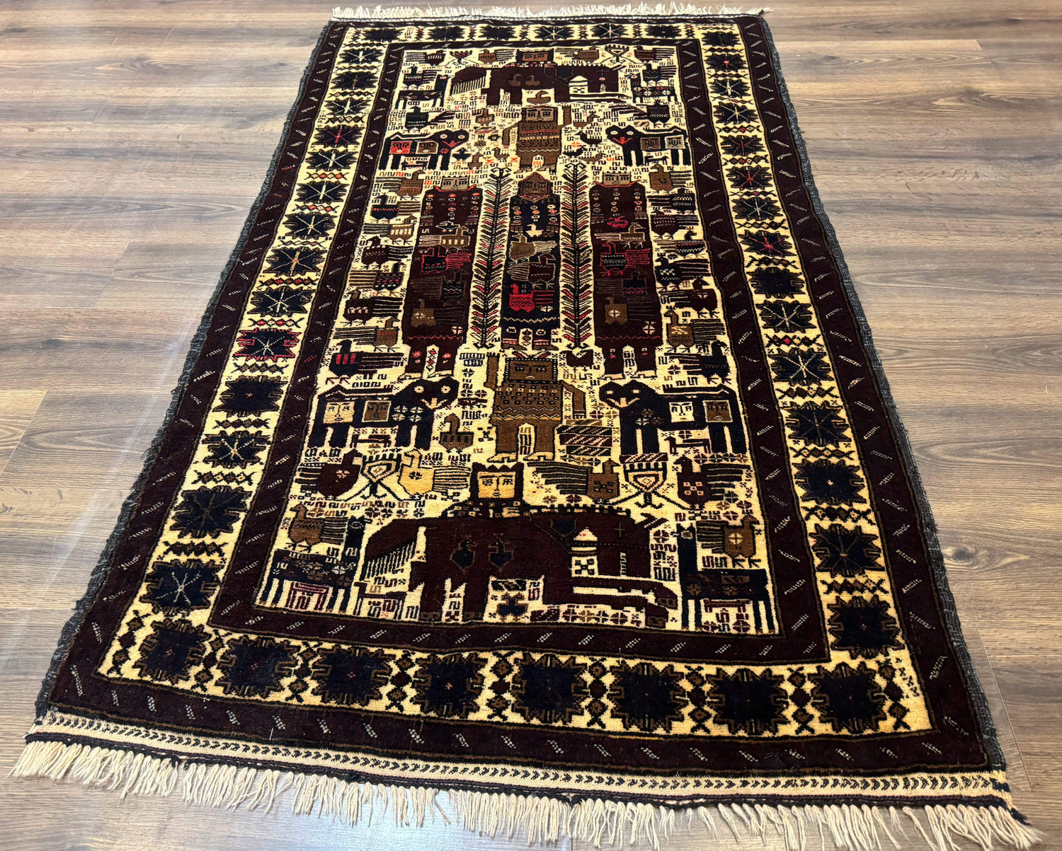 USED Persian Baluch Tribal Rug 4x6, Human and Bird Pictorials, Vintage, Wool, Collectible