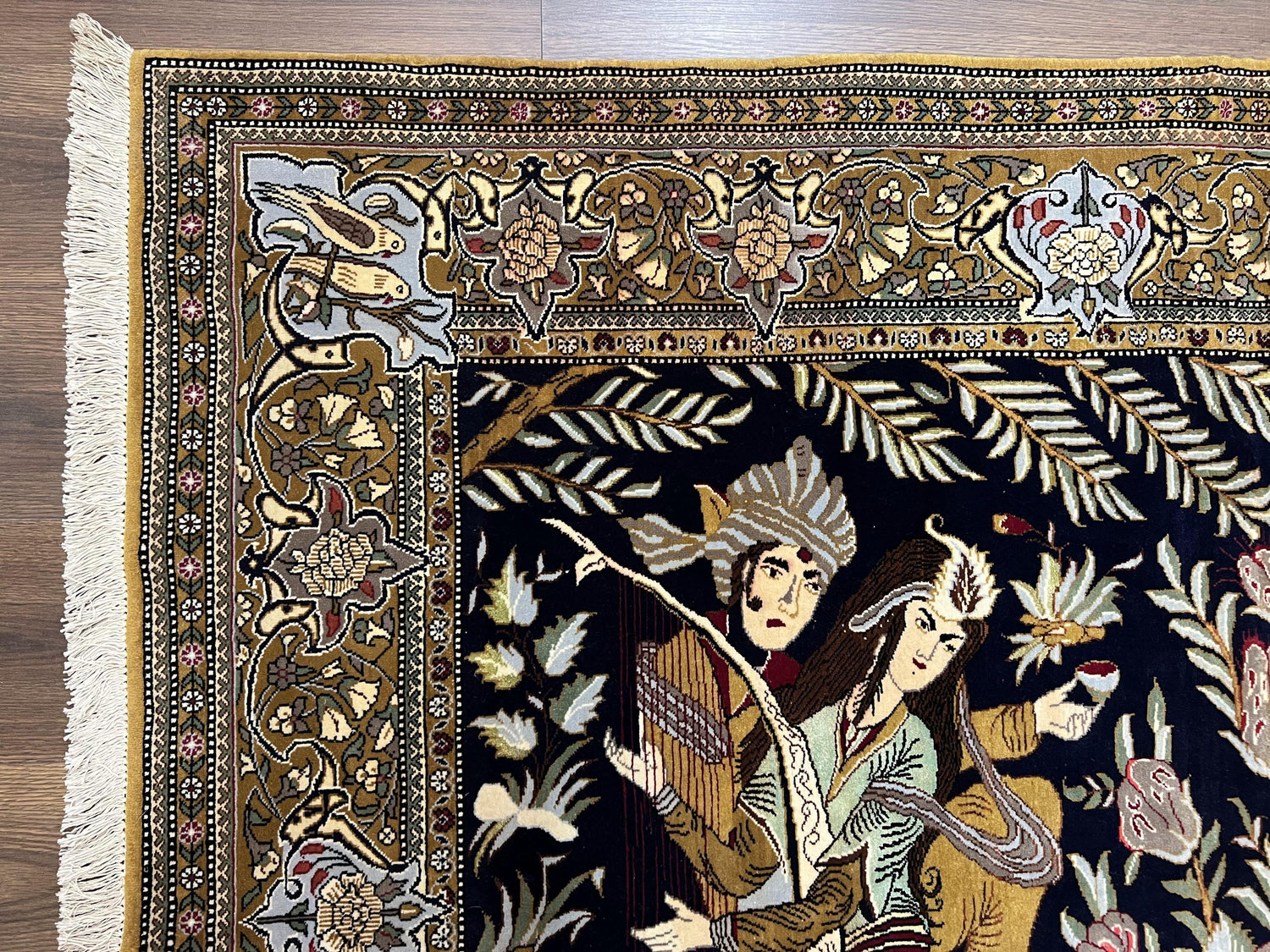 USED Persian Qum Pictorial Rug 4.8 x 6.5 - Layla & Majnun, Birds