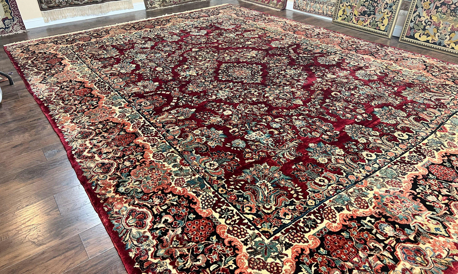 USED Persian Sarouk Rug 12x17, Wool Hand Knotted Antique Carpet, Dark Red, Traditional Floral Oriental Rug, 12 x 17 Extra Large Handmade Rug