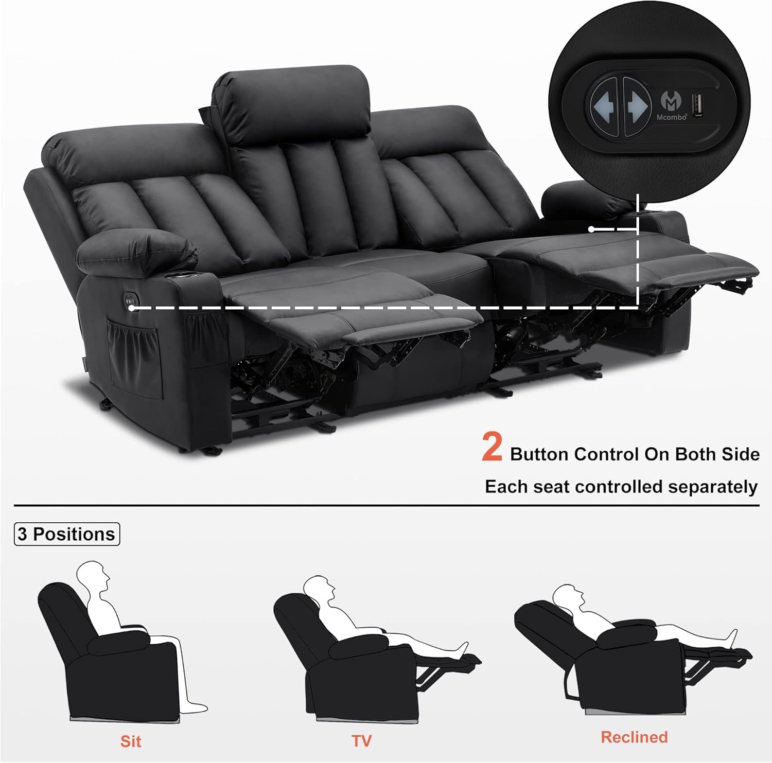 Imagine evenings of movie nights and quiet evenings at home transformed by spa-like heat, soothing vibration, and a layout built for real life. This recliner sofa brings warmth, practicality, and lasting comfort to your living space.