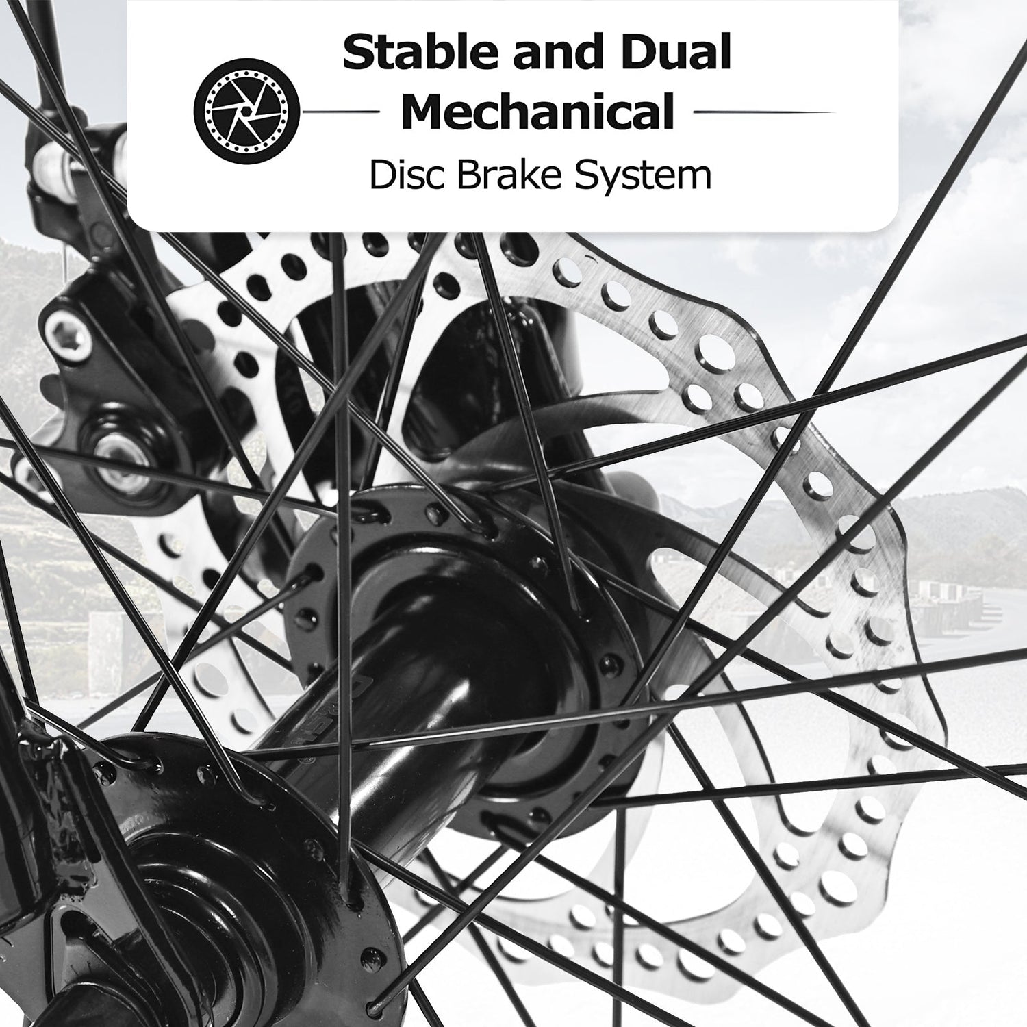 - [Double Disc Double Safety]- fat tire bikes feature a dual disc brake system. Both front and rear are equipped with mechanical disc brakes, which can greatly reduce the braking distance and ensure that you can stop immediately in case of emergency.