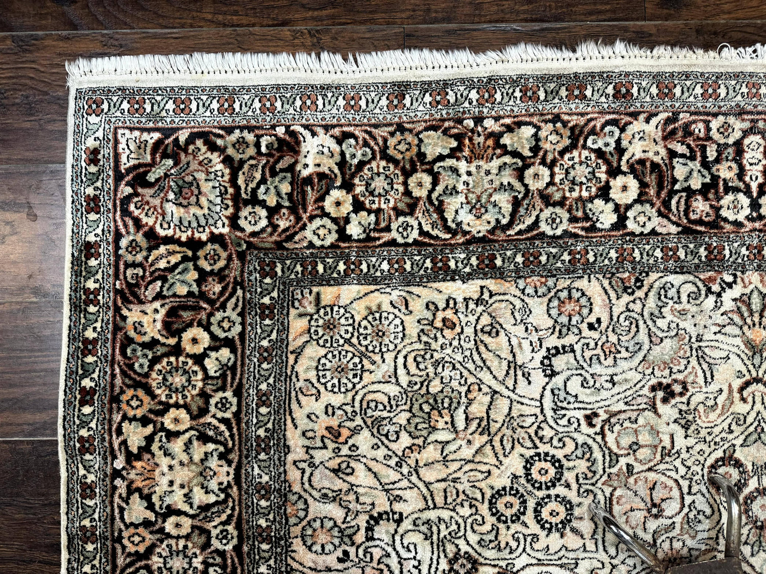 A Beautiful Vintage Handmade Hand-Knotted Silk Indian Kashmiri Area Rug. A great way to transform any space.