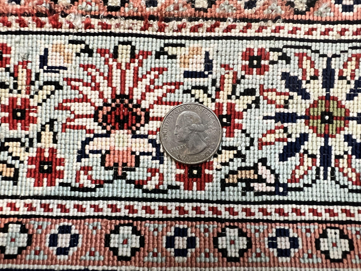 | Condition/Notes | A beautiful vintage silk Turkish Kayseri rug in very good condition. Finely knotted, with a knot density of 300 knots per square inch. Free of stains, odors, discolorations, tears, etc. Good pile & fringes. Recently cleaned and ready to be enjoyed in your space. Beautiful semi open field design. |