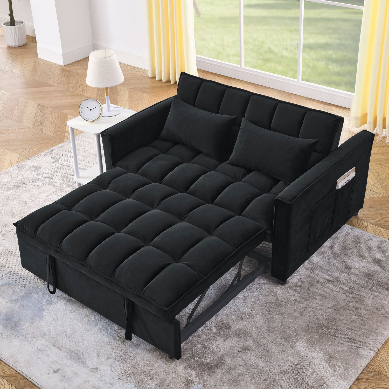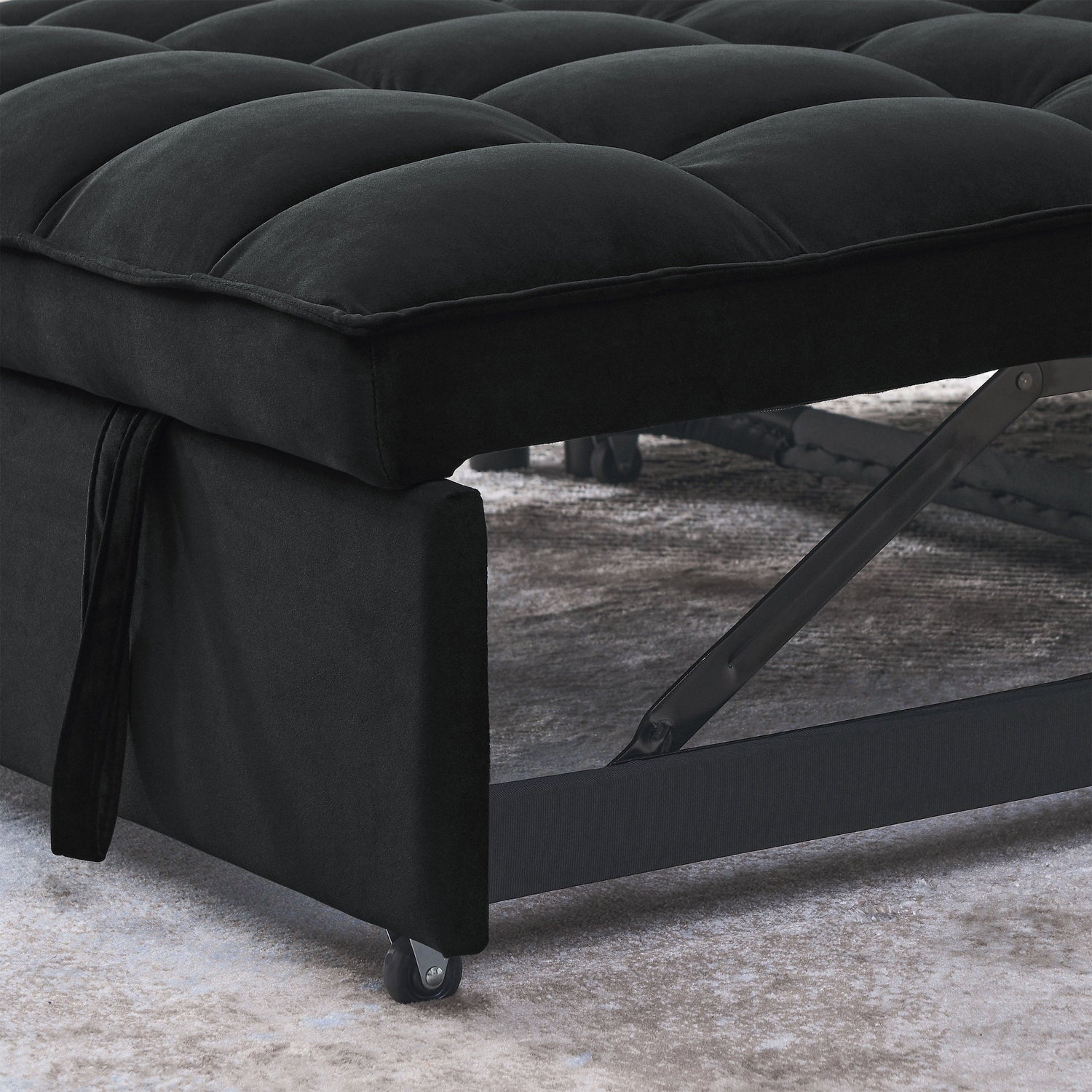 NEW Velvet Black Sleeper Convertible Sofa Recliner Bed 3-in-1 Adjustable Backrest 2-Seater
