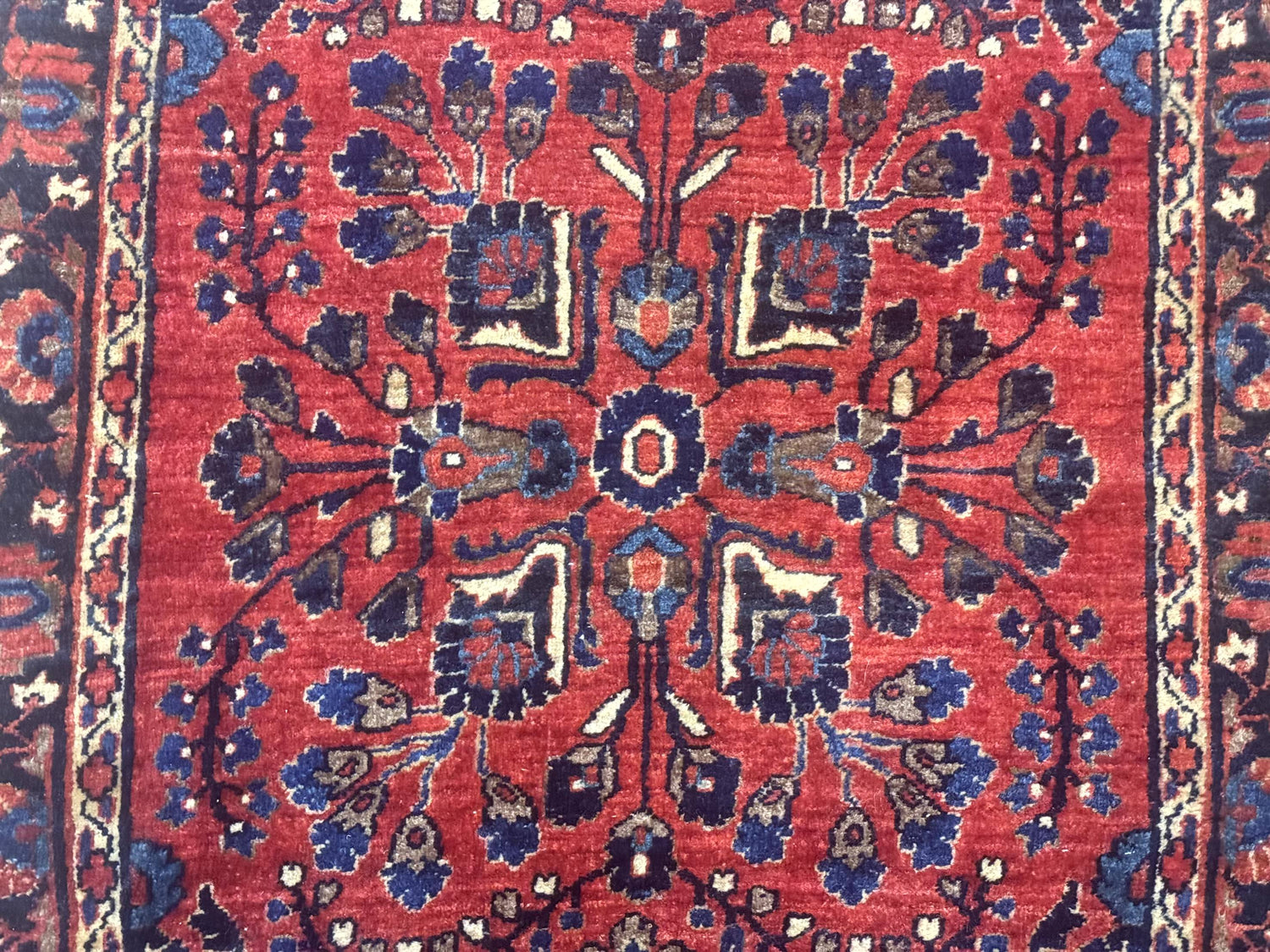Sarouk rugs are among the most celebrated Persian workshop carpets, known for their refined weave and floral elegance. Produced primarily in central Iran, Sarouk rugs from the early 20th century often feature curvilinear motifs with central medallions or allover floral sprays, rendered in rich jewel tones. These rugs were especially popular in the American market during the 1920s and 1930s, which led to the development of a distinct “American Sarouk” style characterized by a red field and blue floral decoration. Renowned for their durability and dignified beauty, Sarouk rugs continue to be a favorite among collectors and decorators alike.