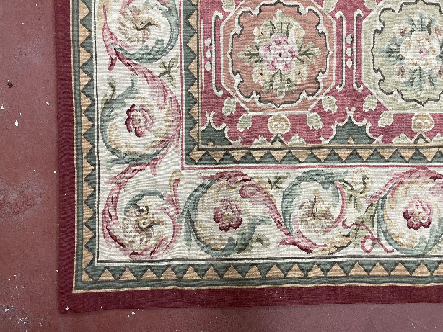 | Condition/Notes | A beautiful new hand-knotted wool flatweave Aubusson/needlepoint rug in mint condition. Ready to be enjoyed in your space. |