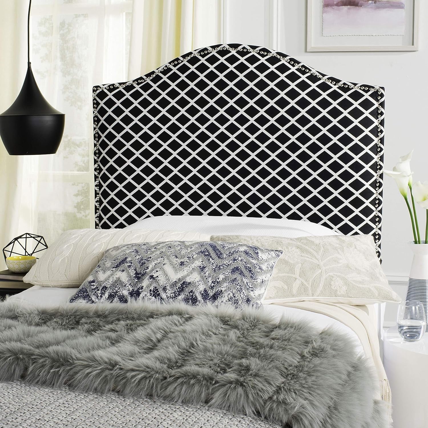 NEW Stylish Black and White Lattice Headboard for Bedrooms