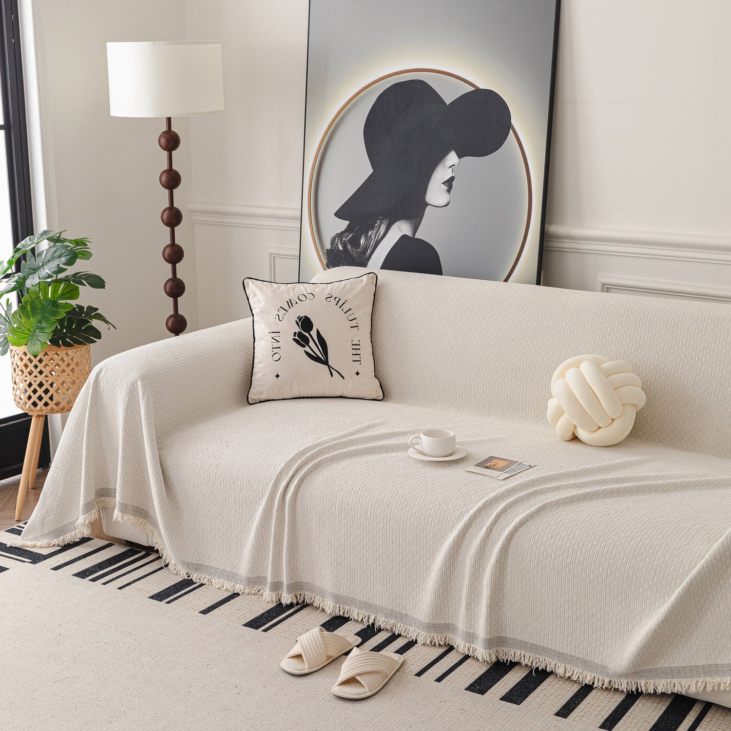 NEW Textured Woven Modern Sofa Cover, Natural Blend Decorative Couch Throw Blanket