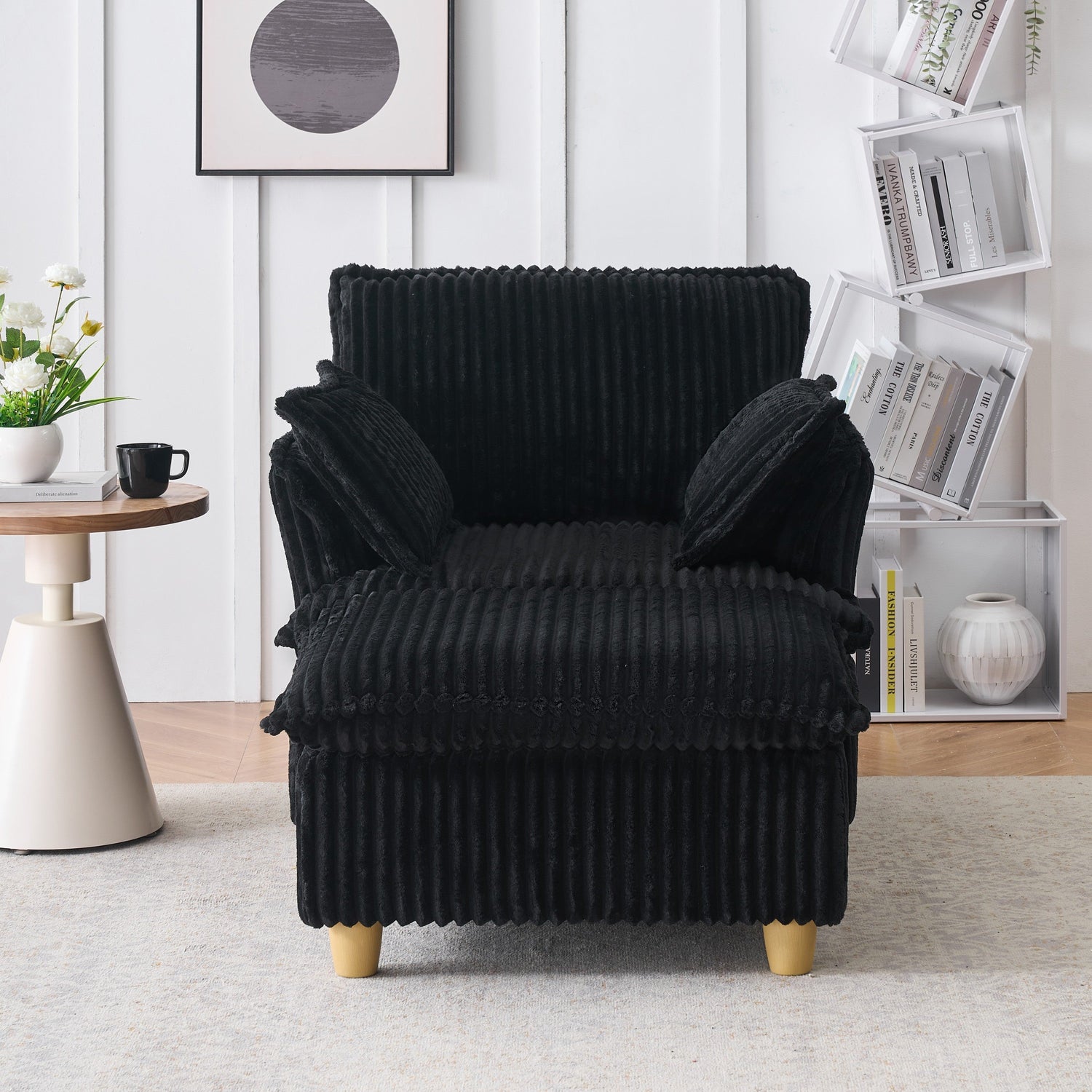 NEW Single-Seat with Ottoman and Throw Pillows Corduroy Chair Lounge