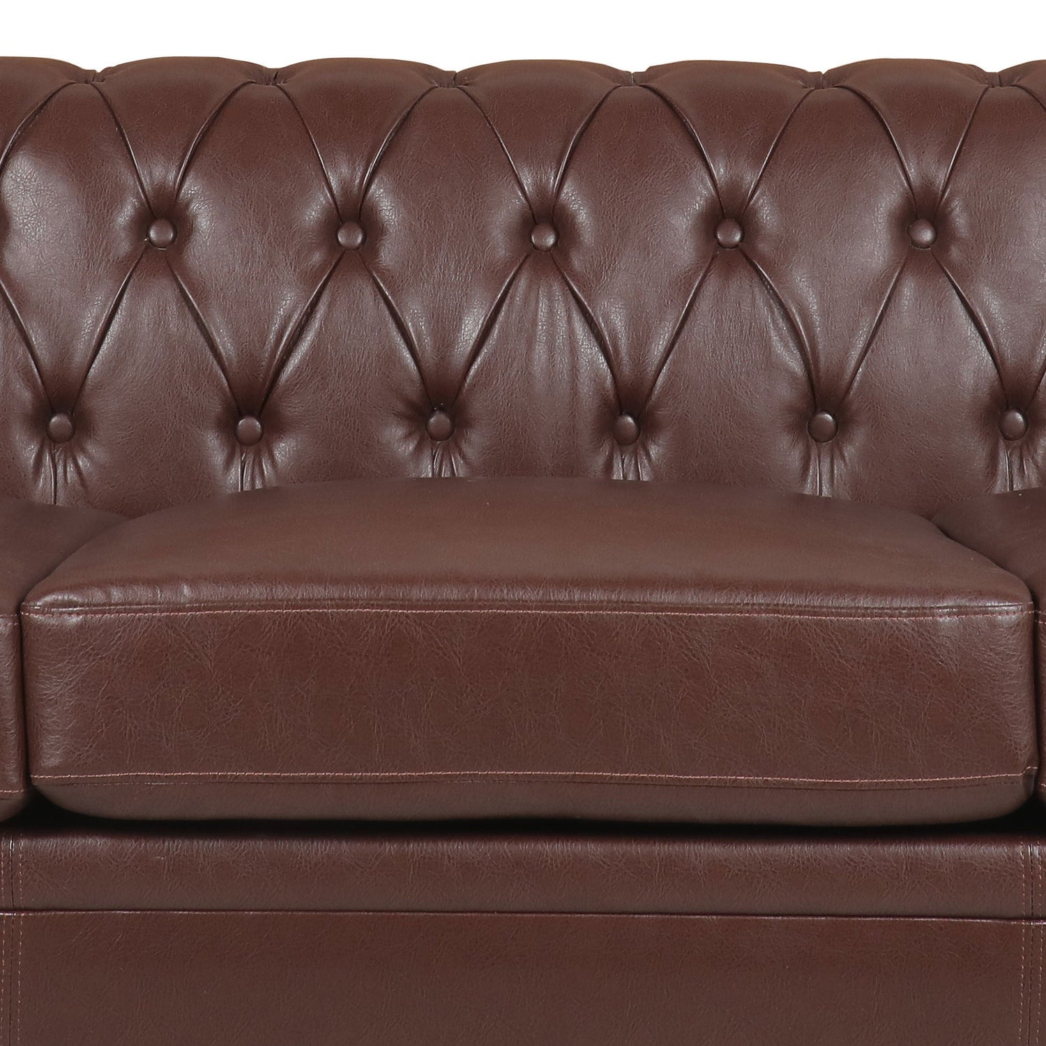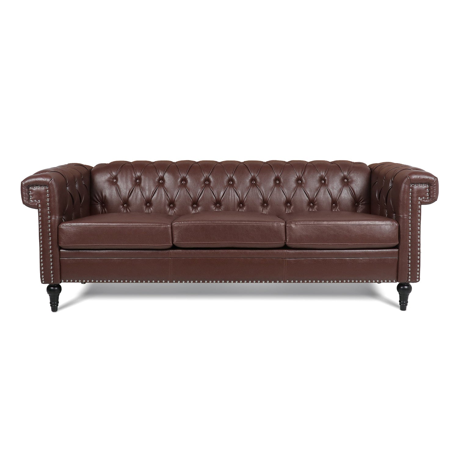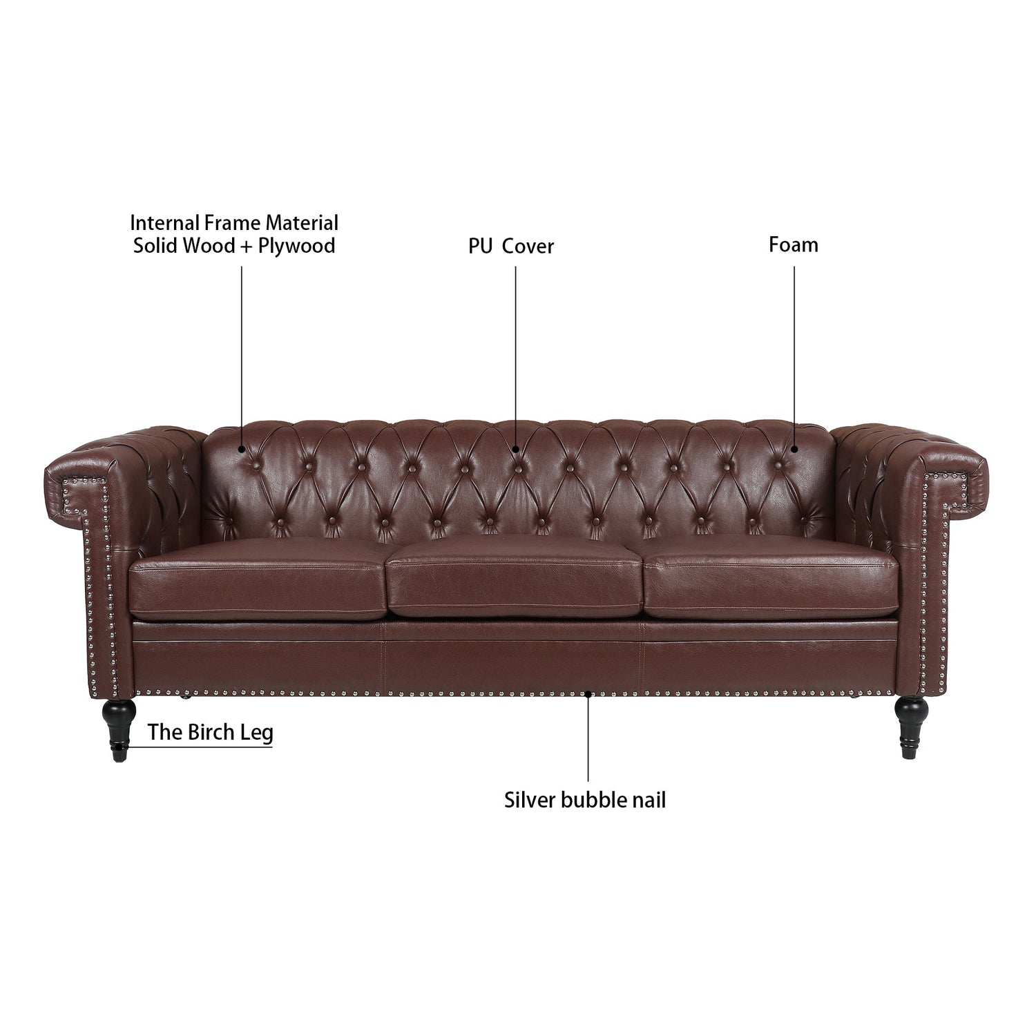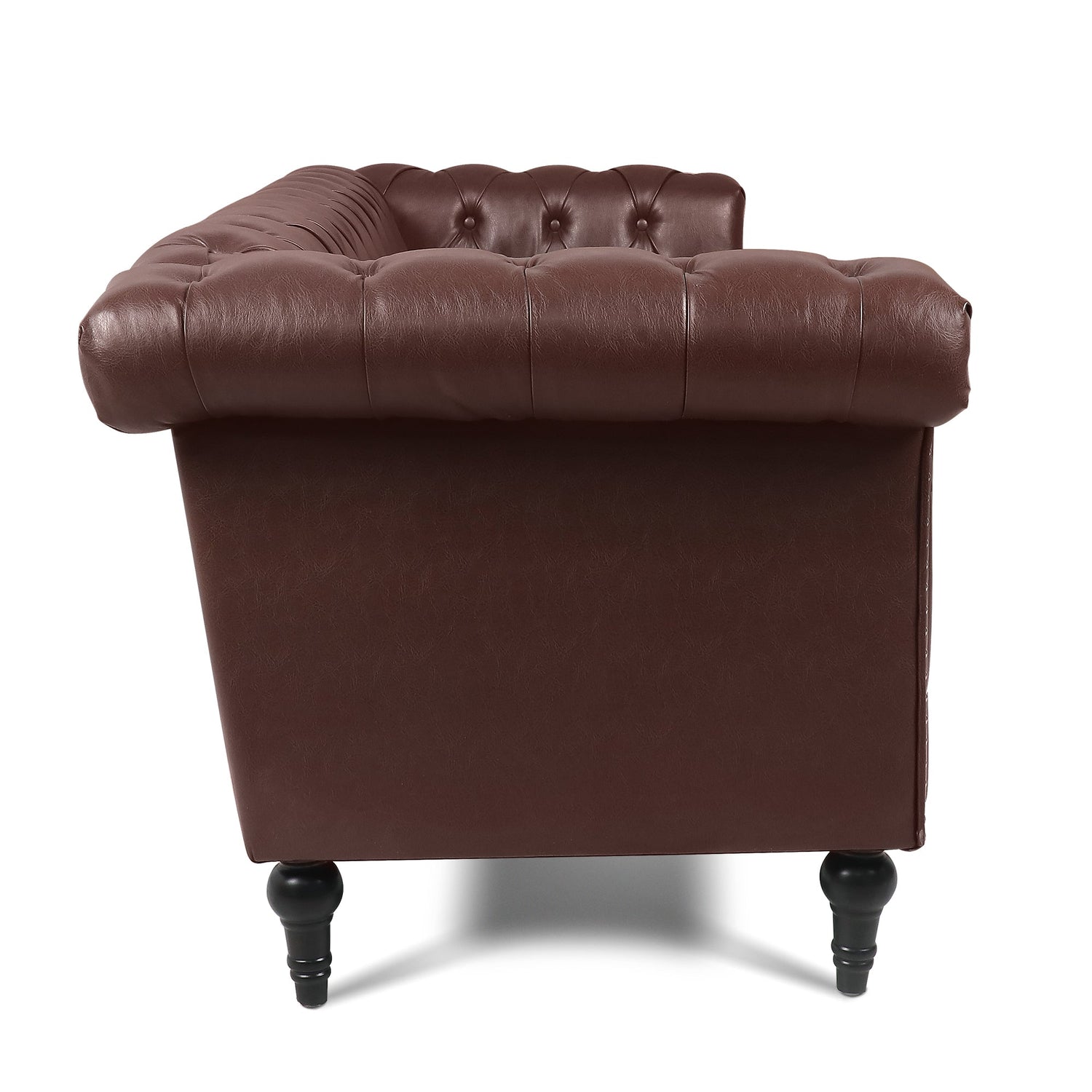 NEW Traditional Dark Brown 3 Seater Sofa with Removable Cushions and Square Arms in PU Material